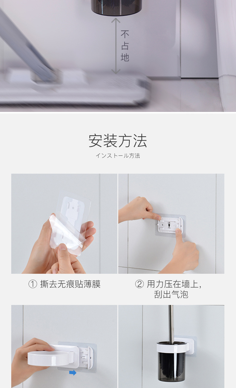 스테인레스 스틸 손잡이 변기 브러시, 흔적 없는 접착제, 벽걸이형 변기 청소, 욕실 청소 브러시, 각도 없이 맞춤 설정 가능스토어 가기