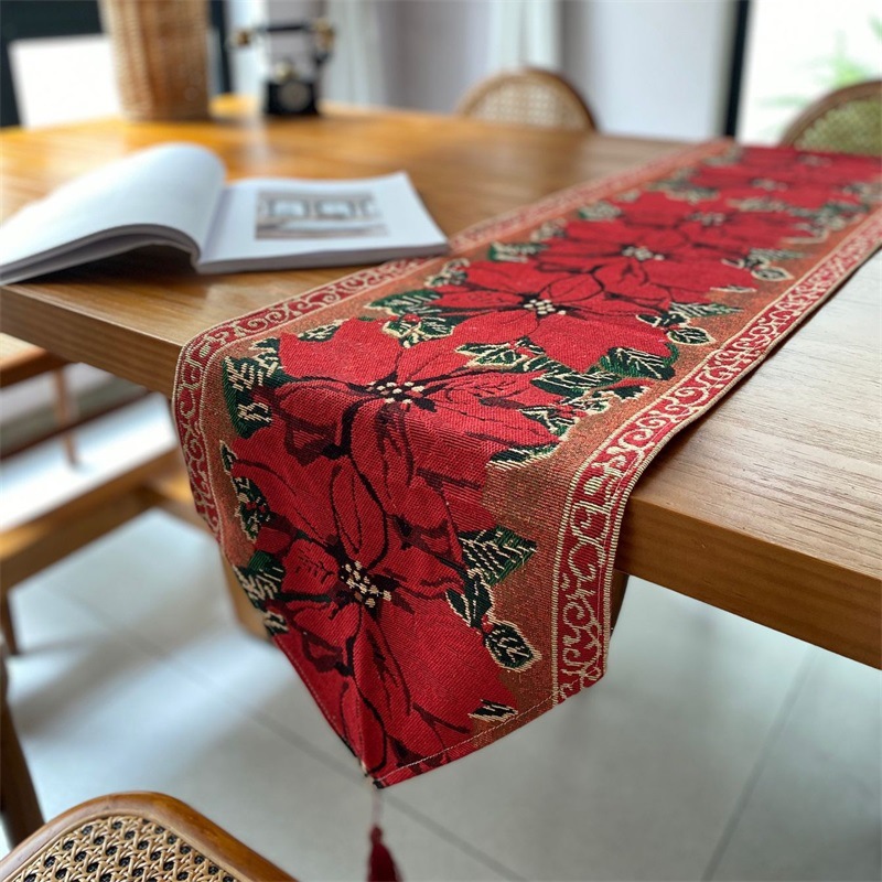 • 크리스마스 테이블 러너 테이블 매트 자카드 패브릭-9