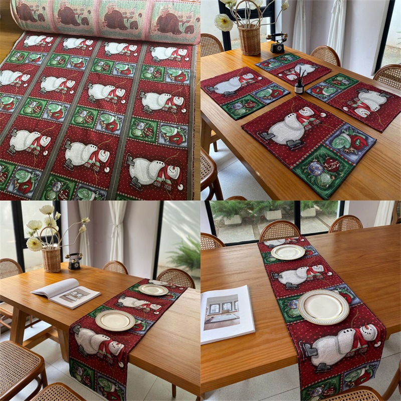 • 크리스마스 테이블 러너 테이블 매트 자카드 패브릭-1