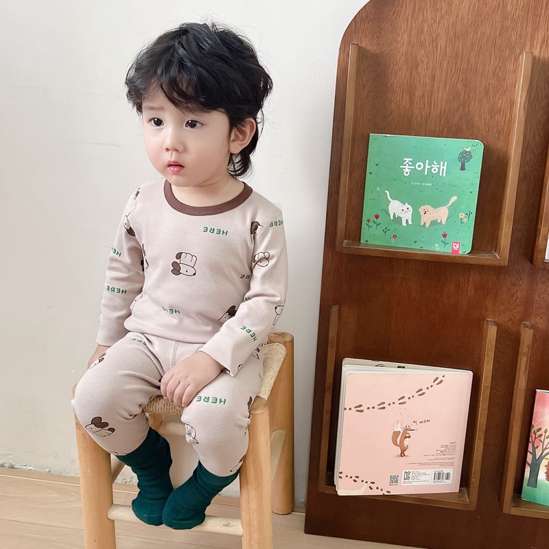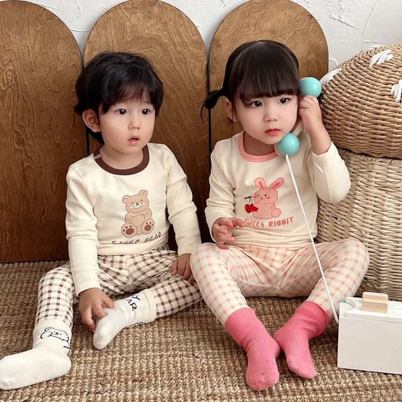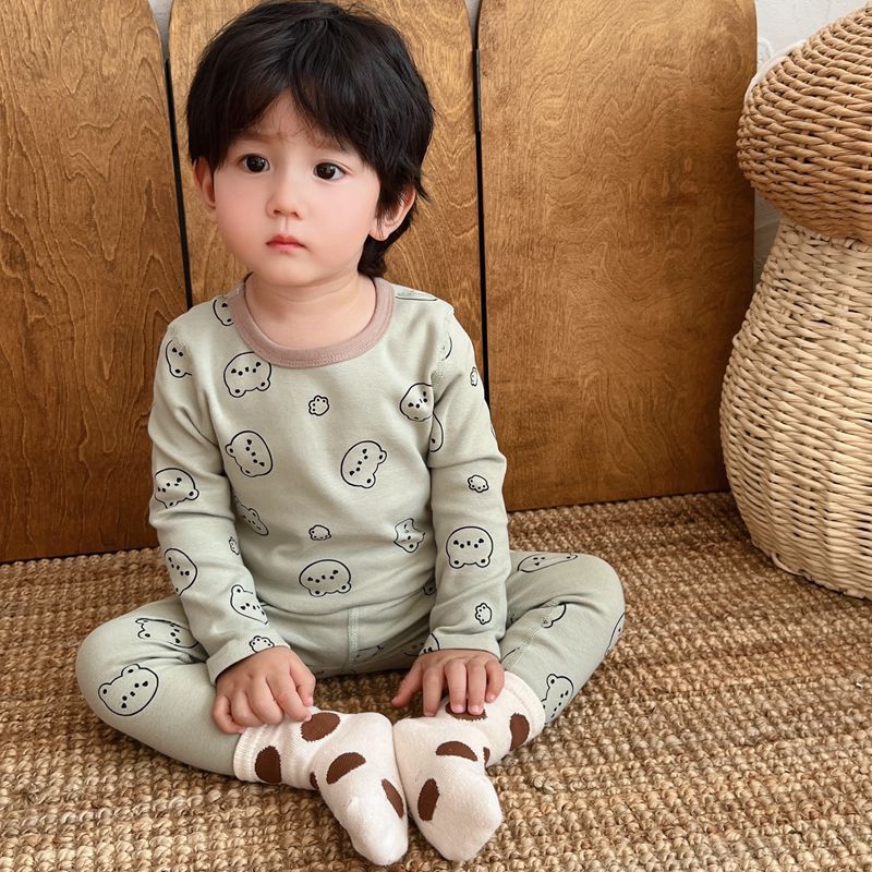 어린이 가을과 겨울 한국 스타일 순면 잠옷 어린이 따뜻한 바지 속옷 소년과 소녀 아기 만화 홈 의류 세트