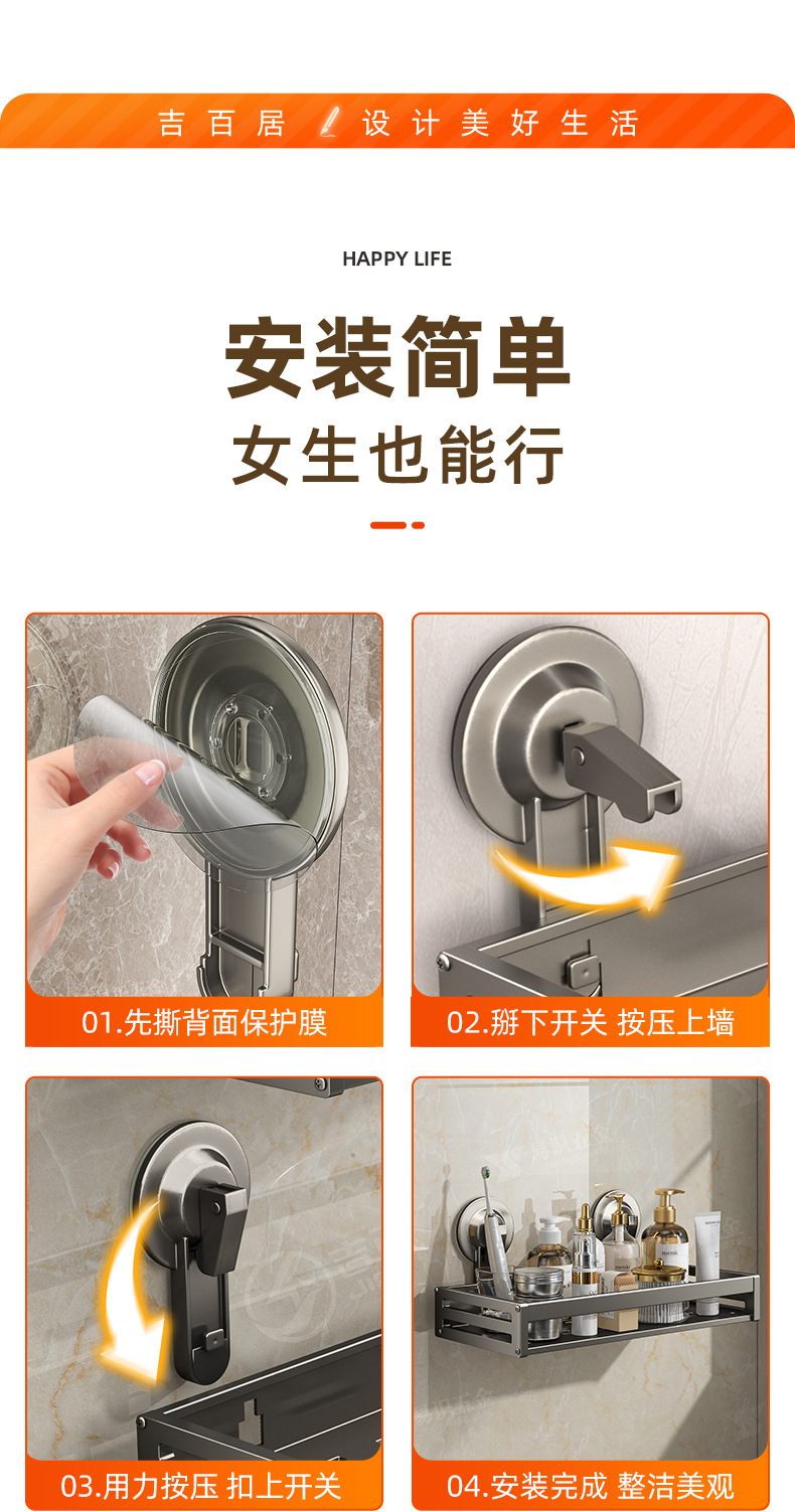• 건그레이 - 흡착컵 탈부착 가능 - 50cm [단층]