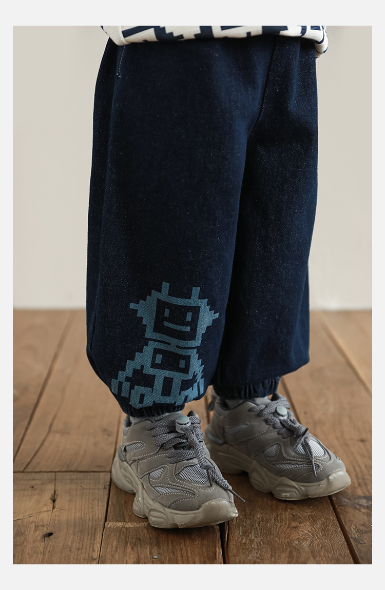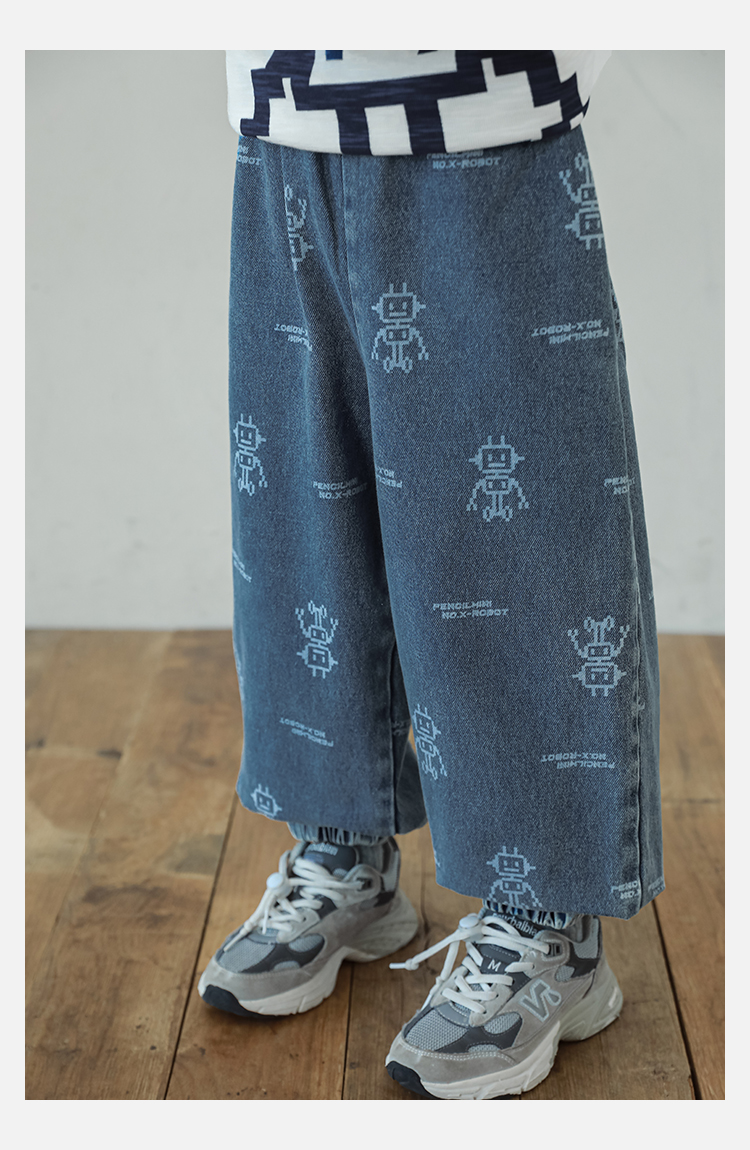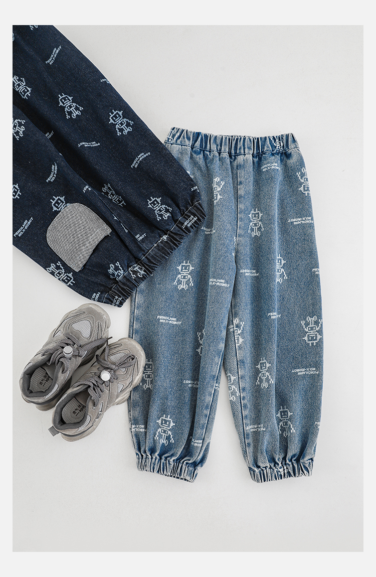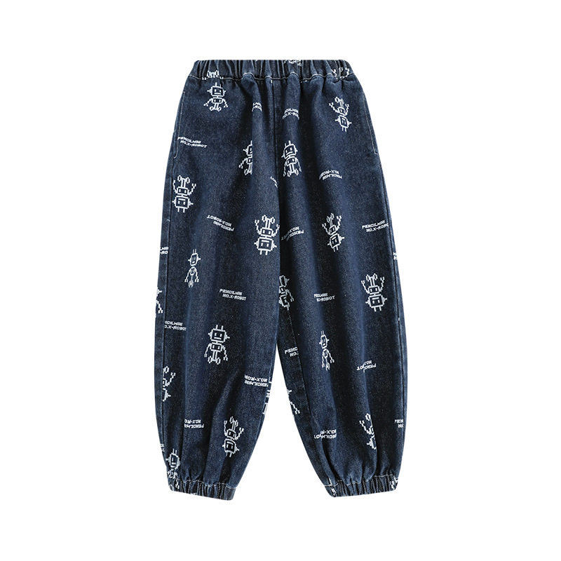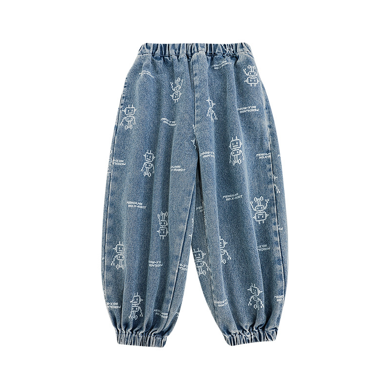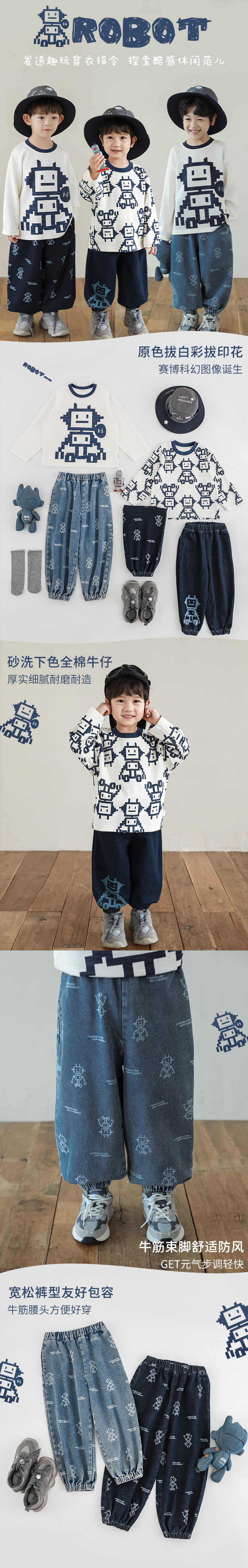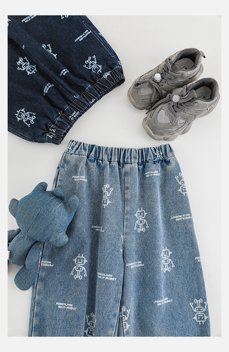 Wuri Boys의 패션 청바지 어린이 유행 바지 가을 2024 새로운 느슨한 사이버 스타일 바지스토어 가기