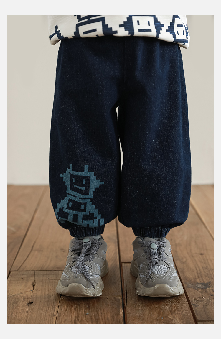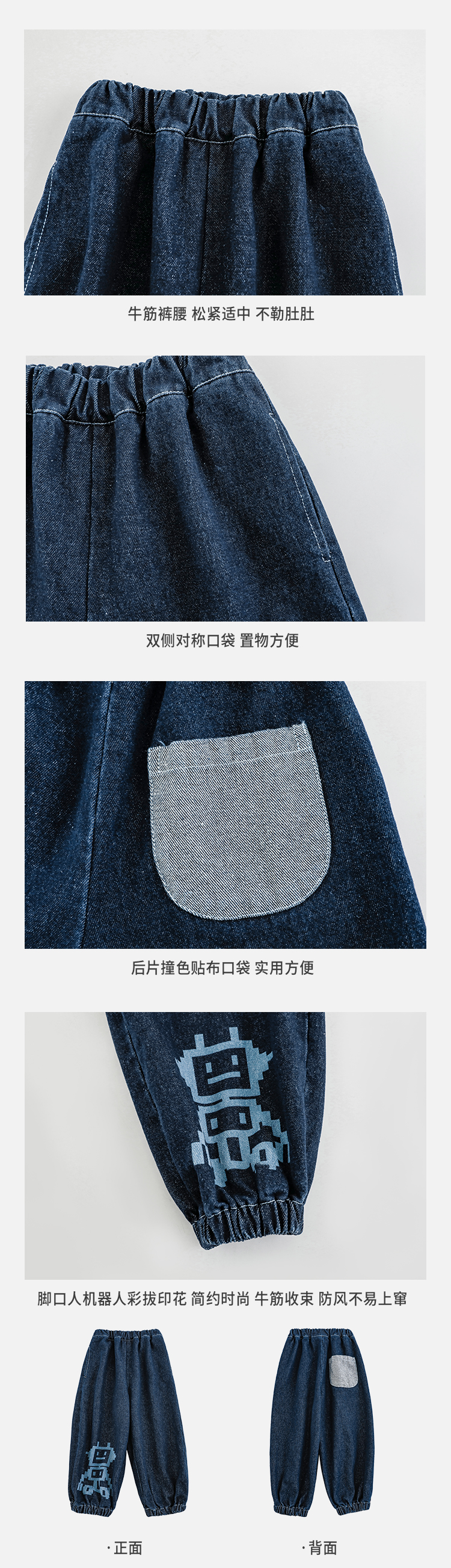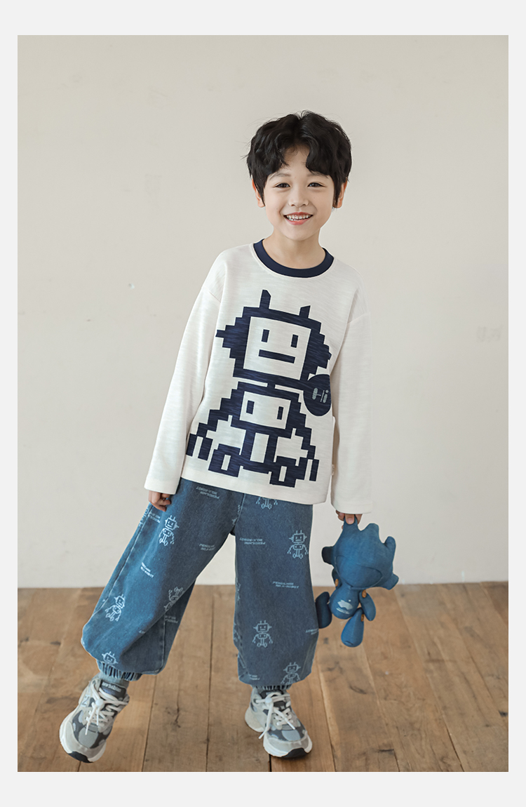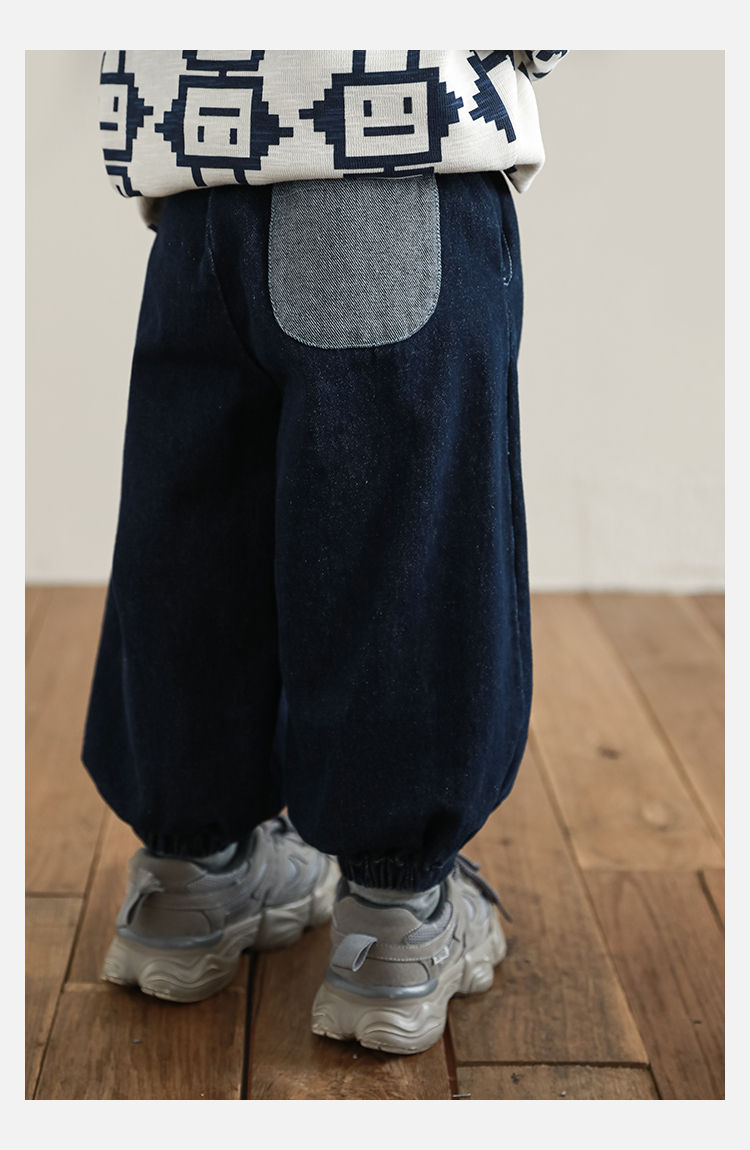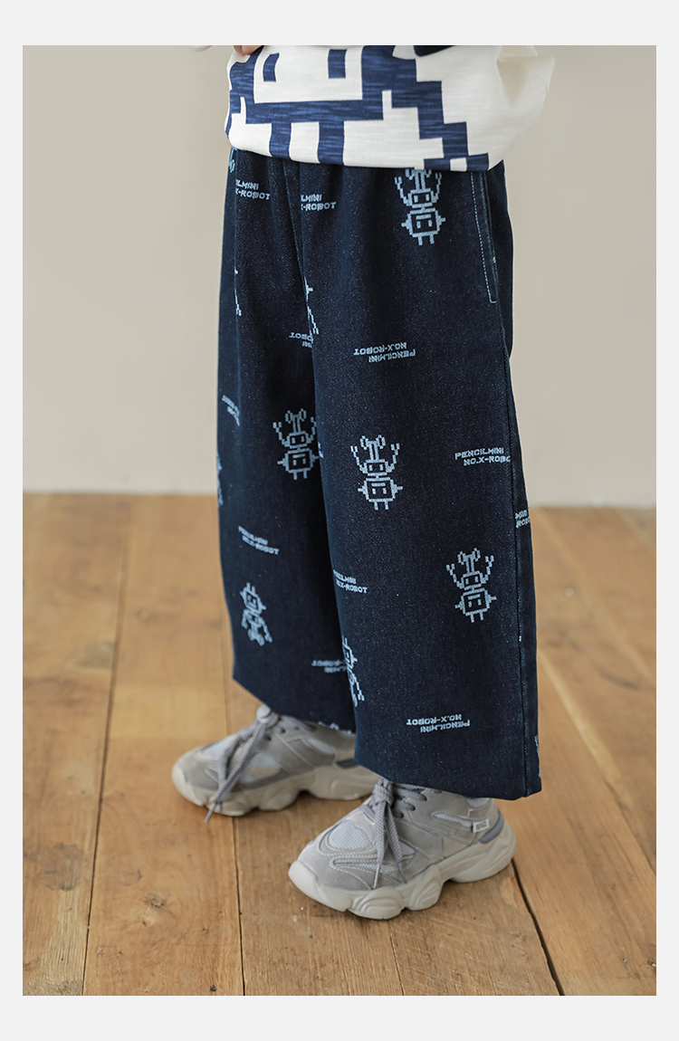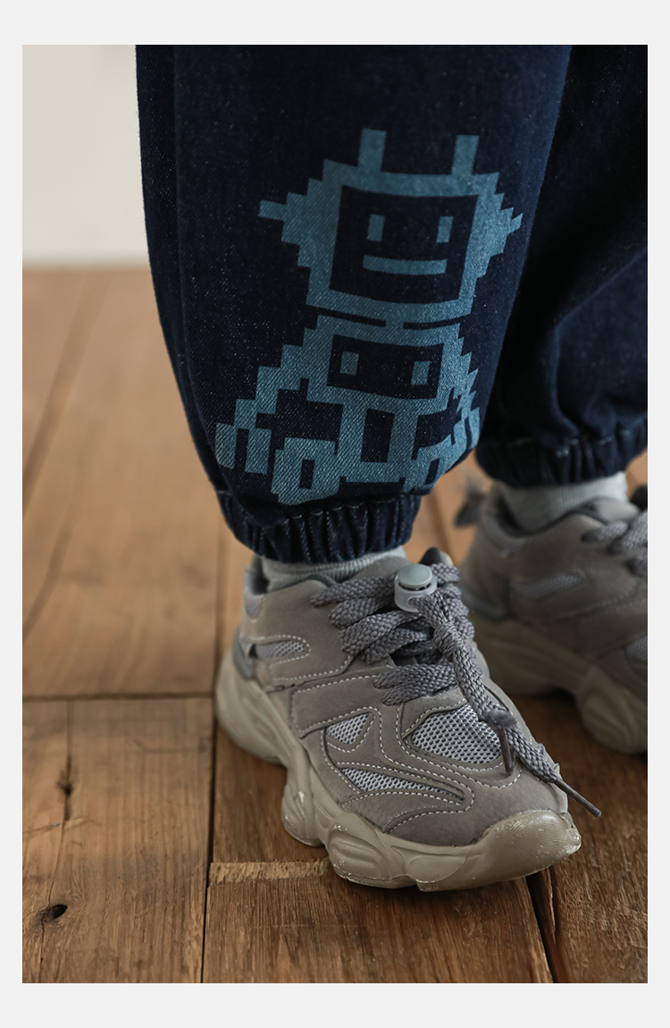 Wuri Boys의 패션 청바지 어린이 유행 바지 가을 2024 새로운 느슨한 사이버 스타일 바지스토어 가기