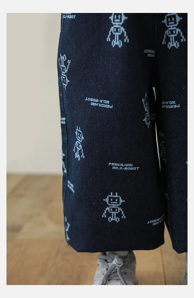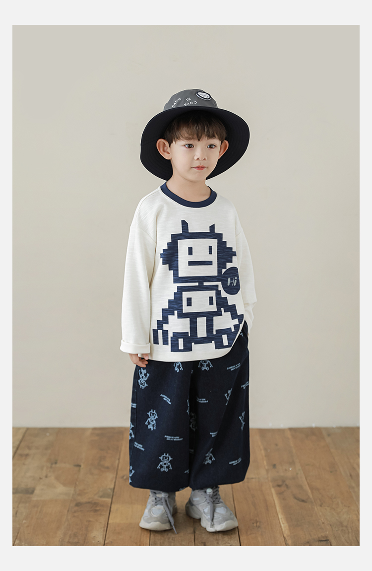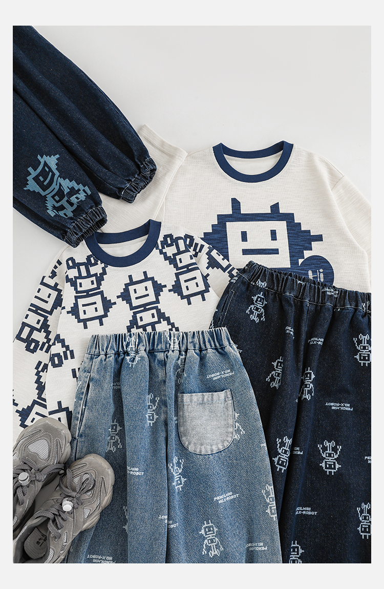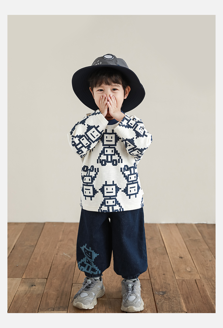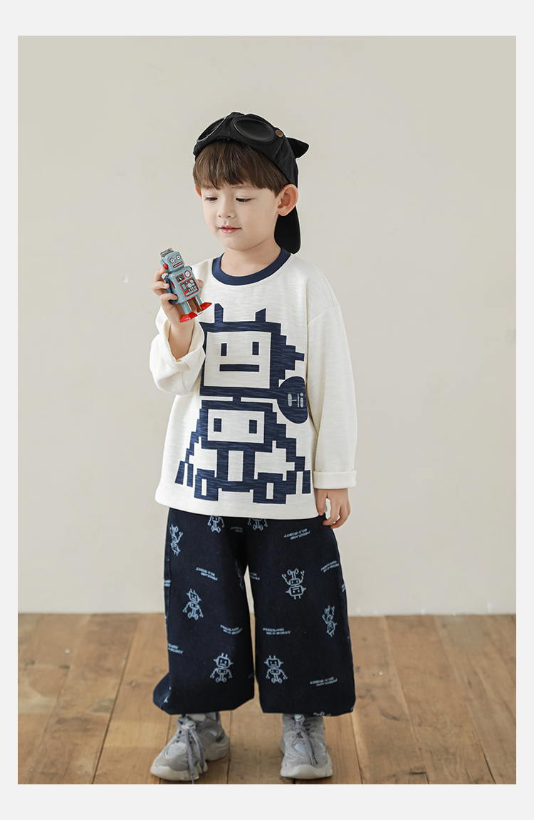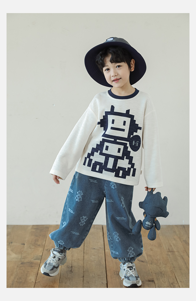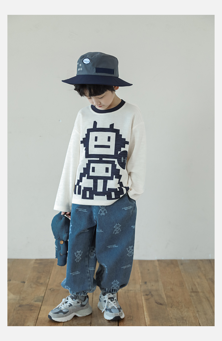 Wuri Boys의 패션 청바지 어린이 유행 바지 가을 2024 새로운 느슨한 사이버 스타일 바지스토어 가기