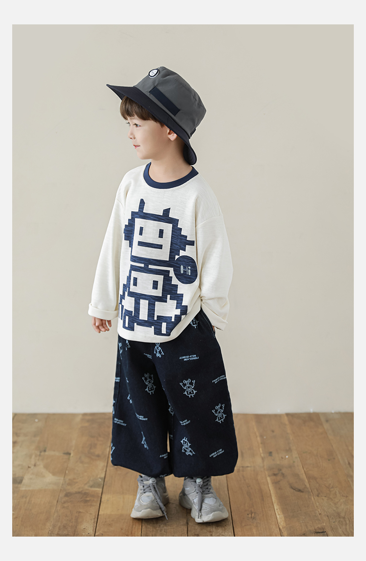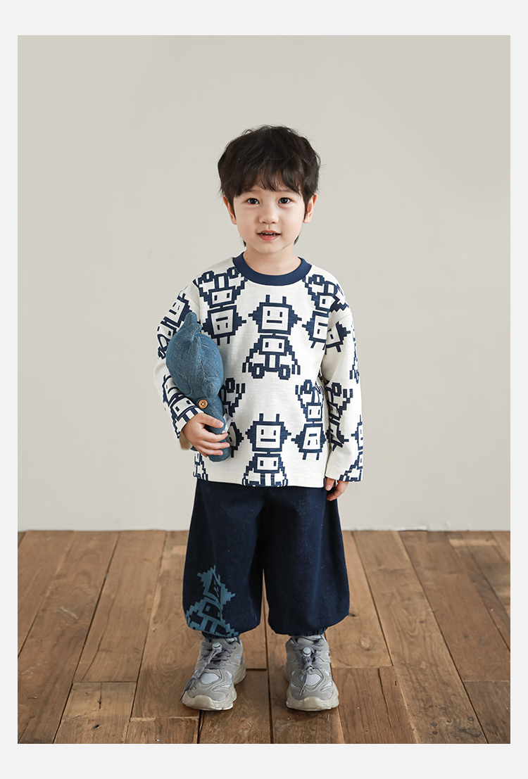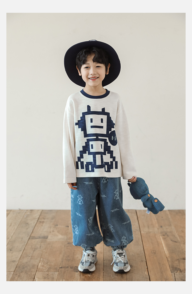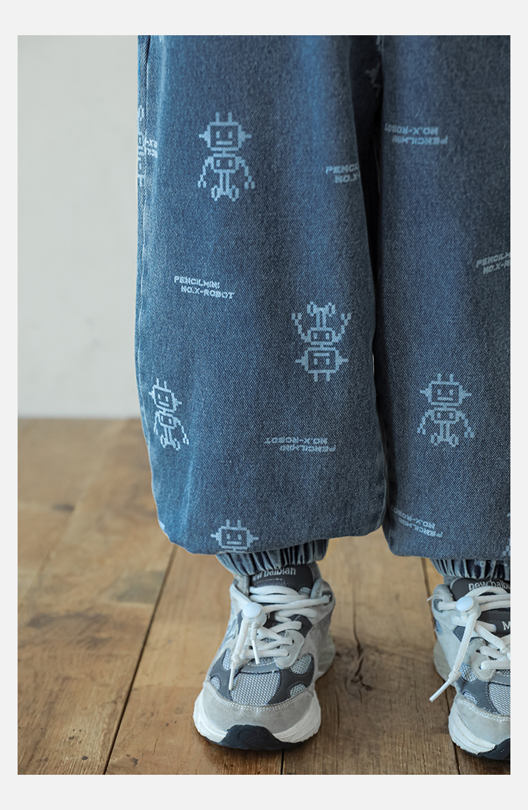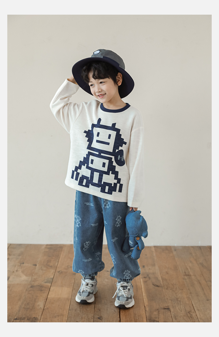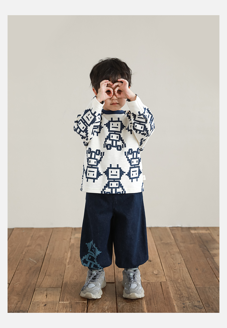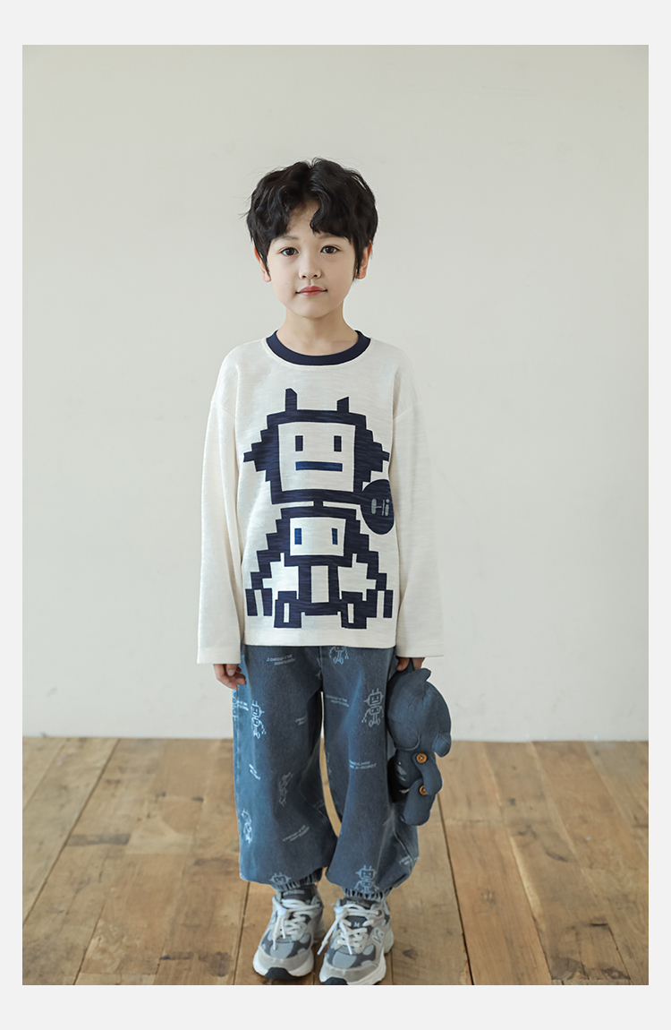 Wuri Boys의 패션 청바지 어린이 유행 바지 가을 2024 새로운 느슨한 사이버 스타일 바지스토어 가기