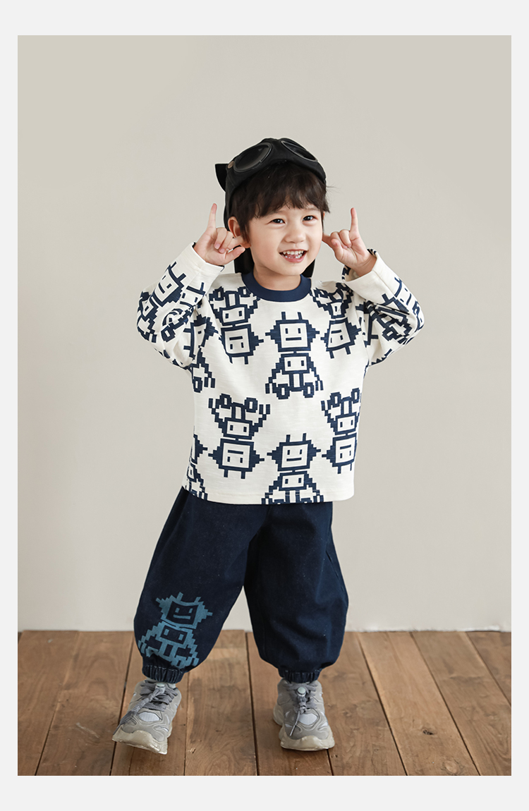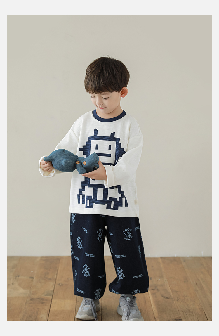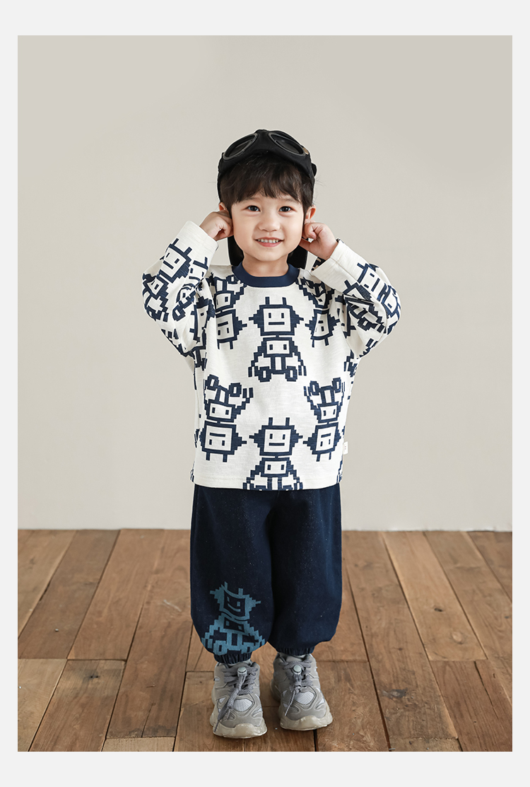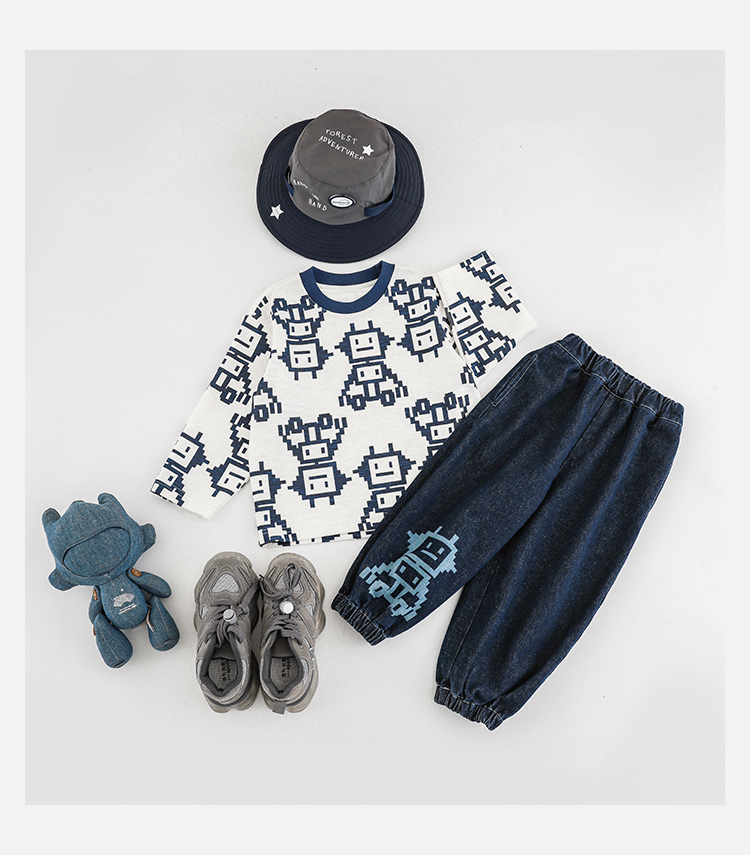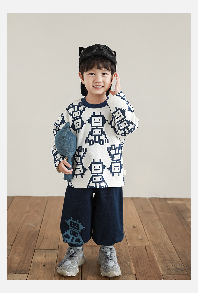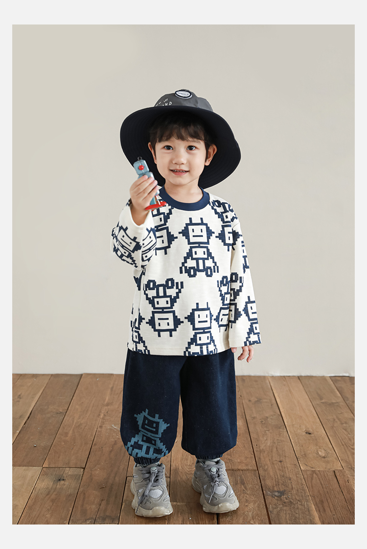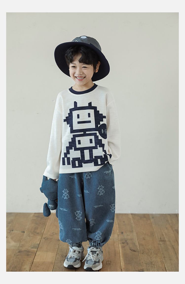 Wuri Boys의 패션 청바지 어린이 유행 바지 가을 2024 새로운 느슨한 사이버 스타일 바지스토어 가기