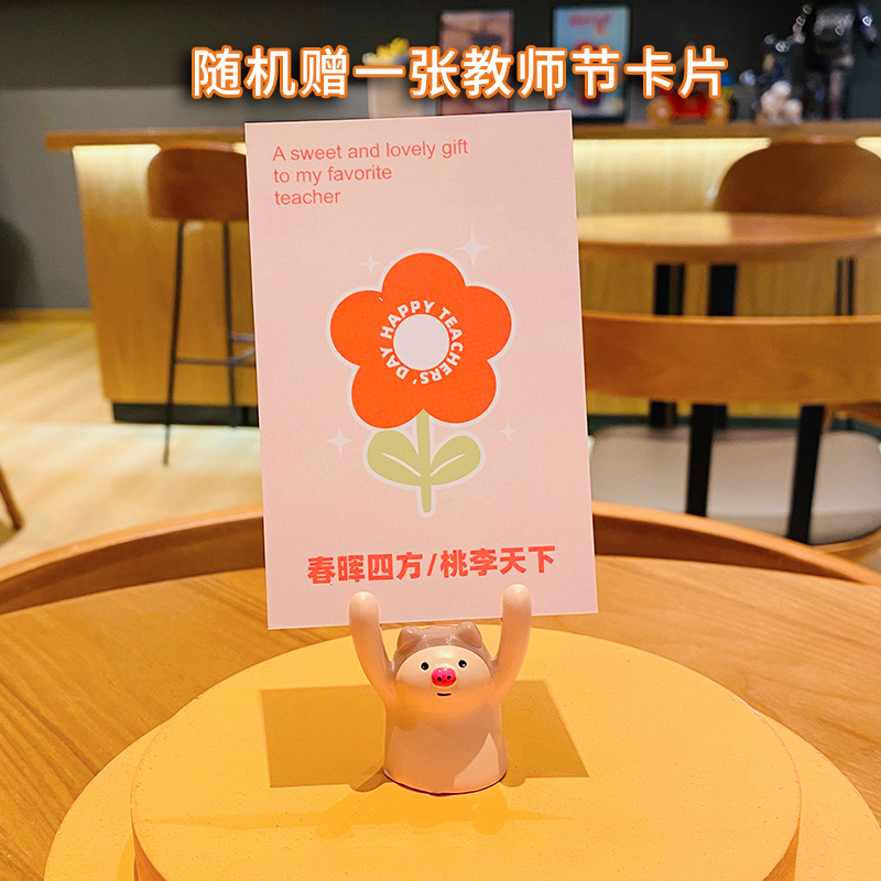 • 카드를 들고 있는 돼지의 영감을 주는 장식품 - 팬더(임의의 스승의 날 카드 제공)
