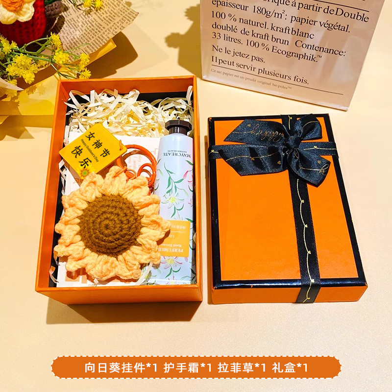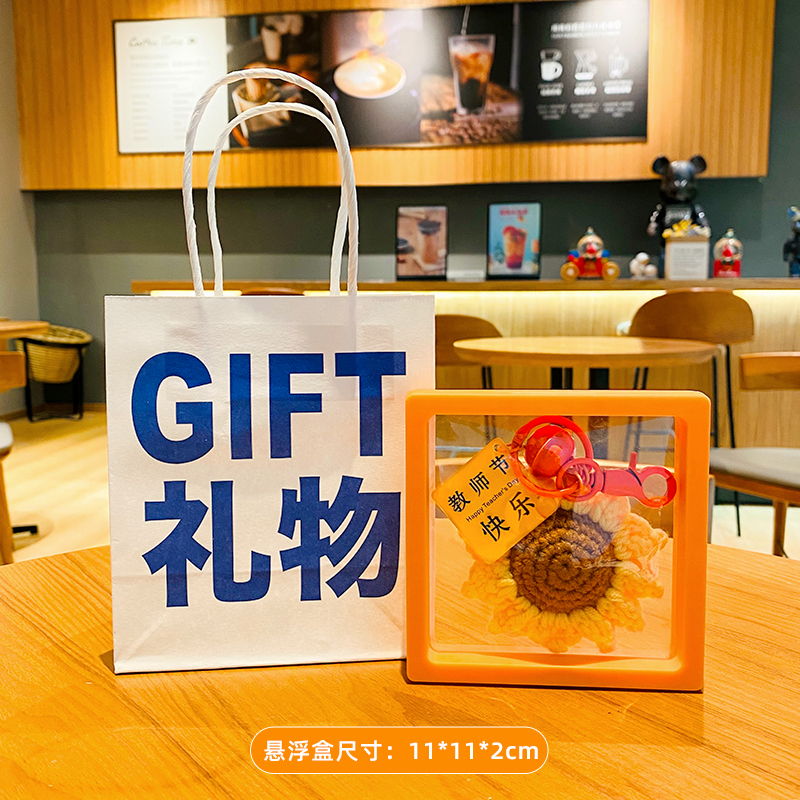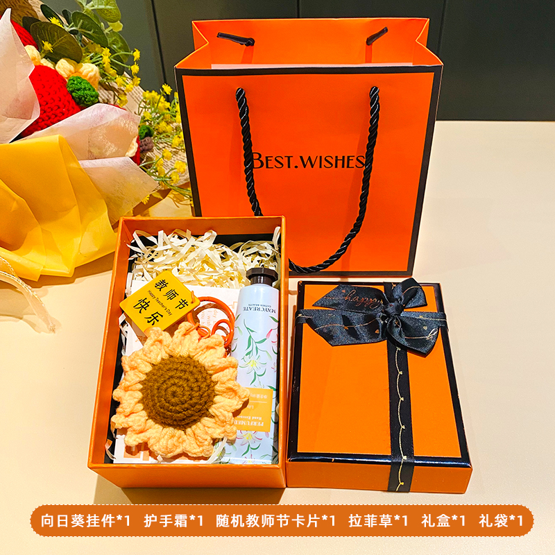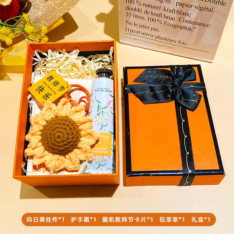 • 봉제 크로셰 펜던트 - 해바라기(행복 스승의 날) + 주황색 서스펜션 박스 + 선물 가방