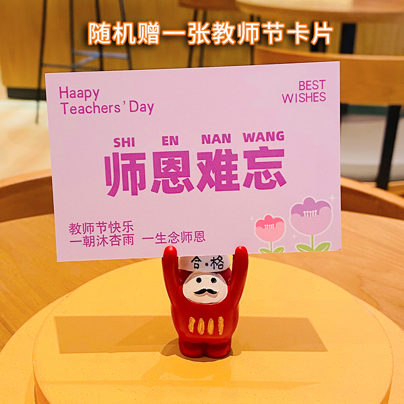 • 카드를 들고 있는 돼지의 영감을 주는 장식품 - 달마(임의의 스승의 날 카드 제공)