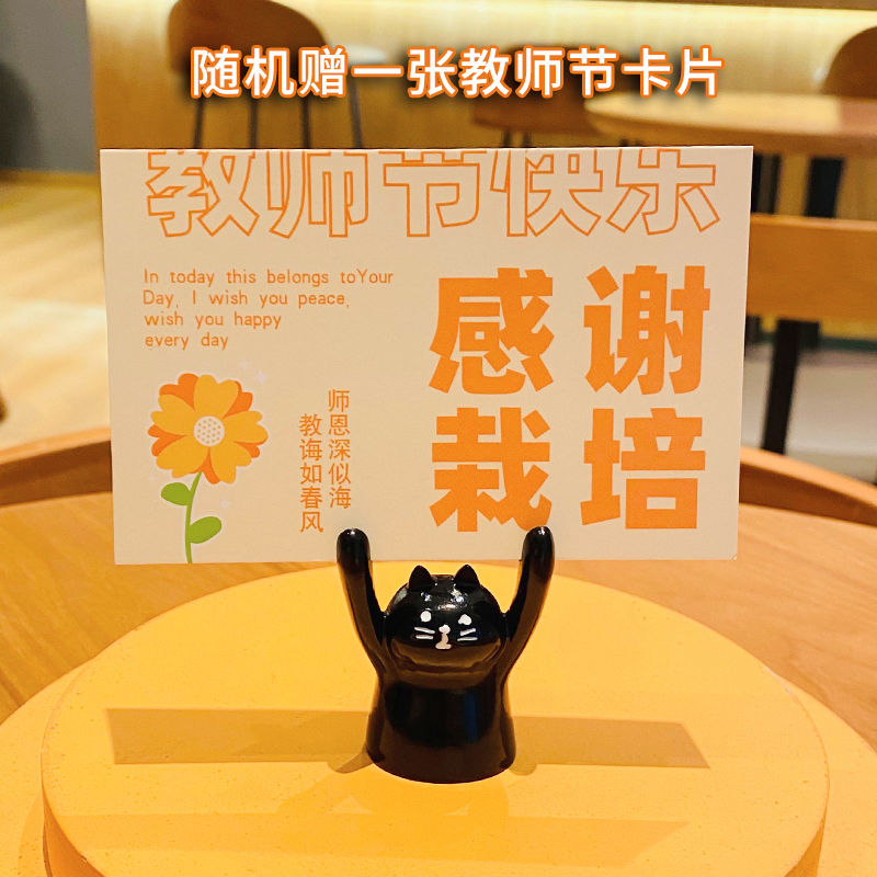 • 카드를 들고 있는 돼지의 영감을 주는 장식품 - 검은 고양이(임의의 스승의 날 카드 제공)