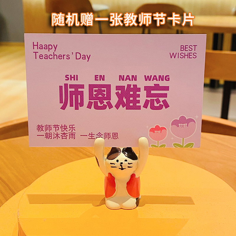 • 카드를 들고 있는 돼지의 영감을 주는 장식품 - 꽃고양이(임의의 스승의 날 카드 제공)