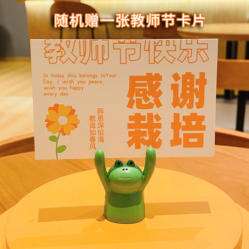 • 카드를 들고 있는 돼지의 영감을 주는 장식품 - 개구리(임의의 스승의 날 카드 제공)