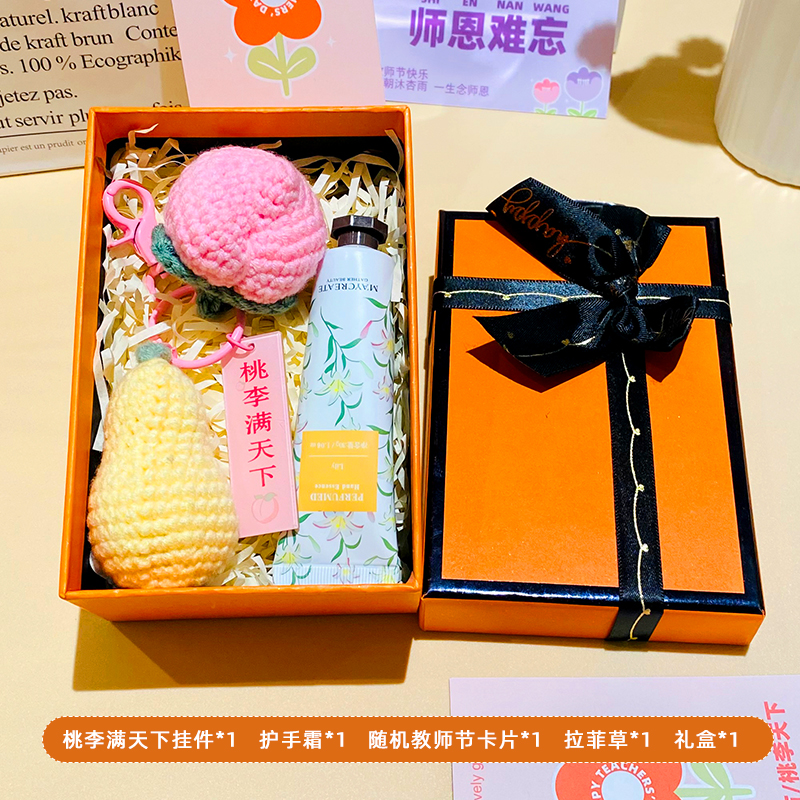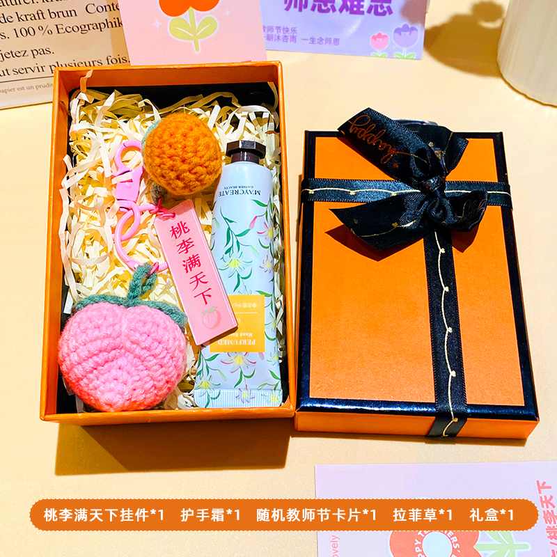 • 스승의 날 선물 상자 (플러시 크로셰 복숭아 자두 펜던트 + 핸드 크림 + 랜덤 카드)