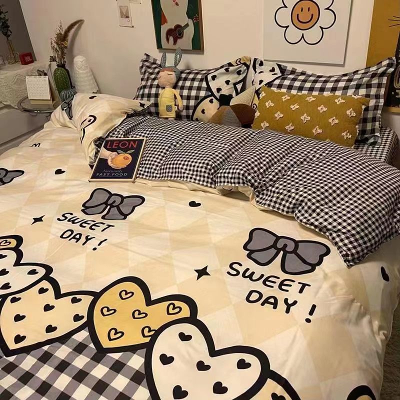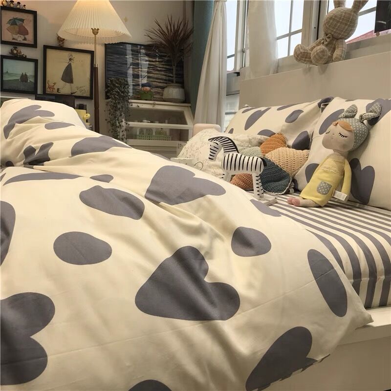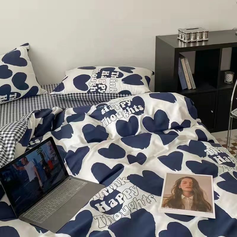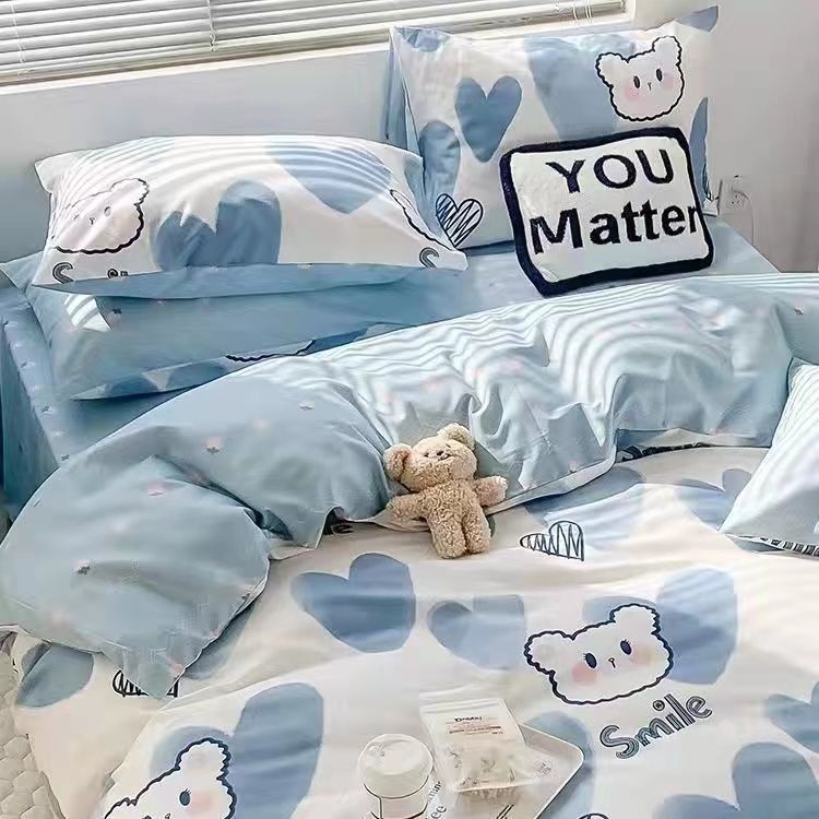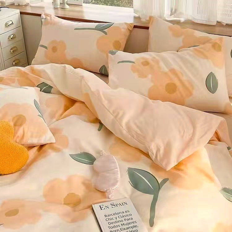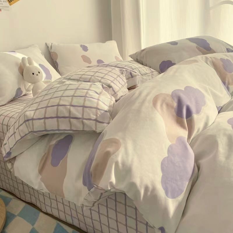 사계절 씻은 면화 이불 커버 4 종 세트 학생 기숙사 침대 시트 더블 3 종 이불 커버 침구스토어 가기