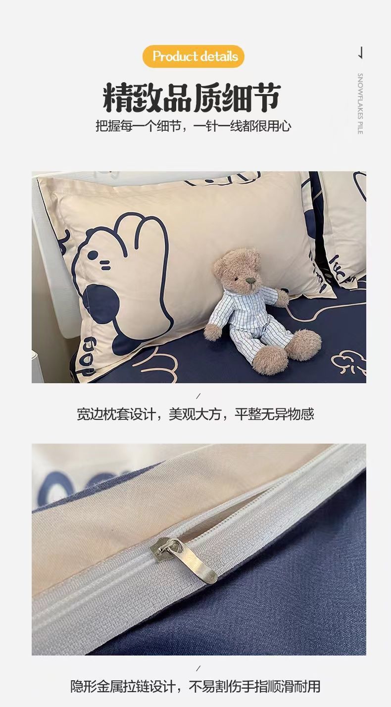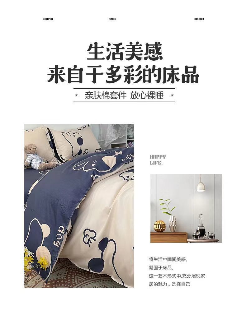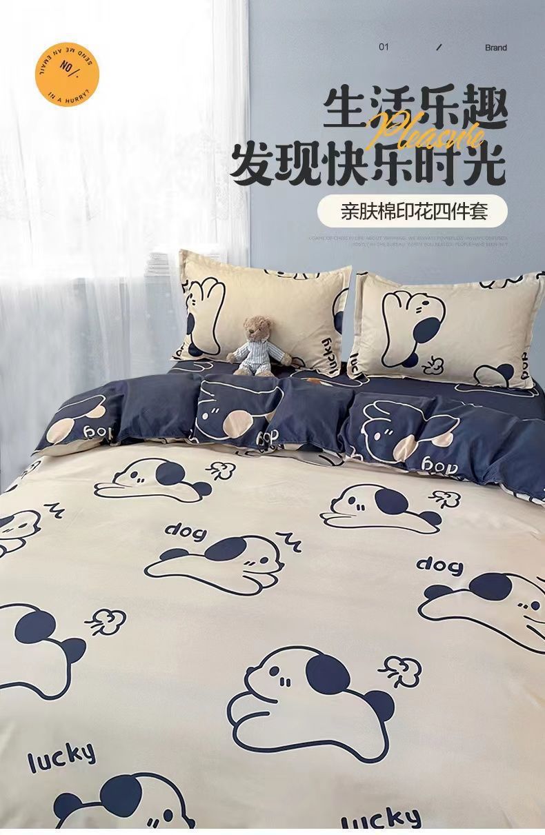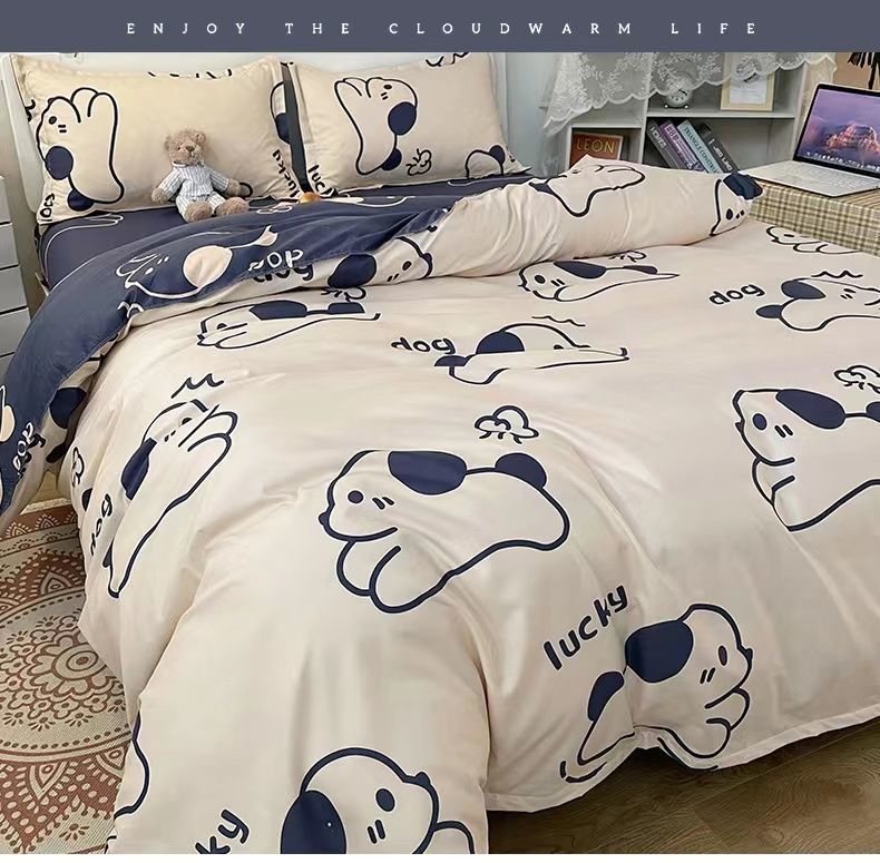 사계절 씻은 면화 이불 커버 4 종 세트 학생 기숙사 침대 시트 더블 3 종 이불 커버 침구스토어 가기