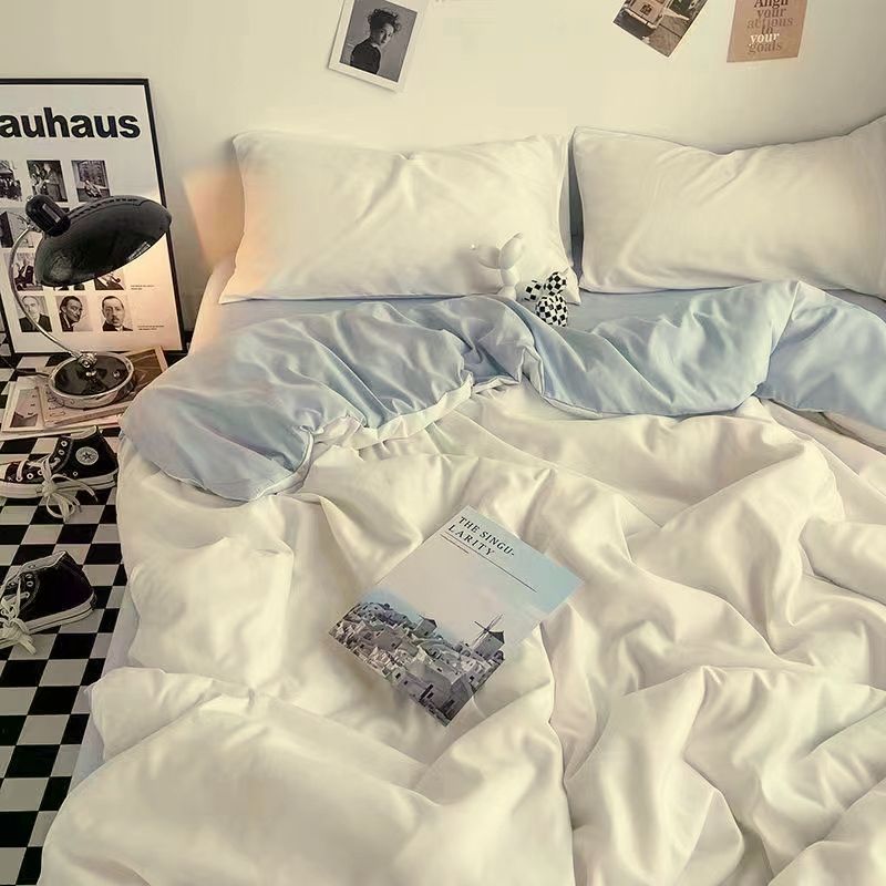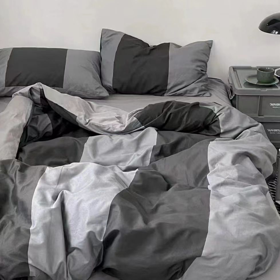 사계절 씻은 면화 이불 커버 4 종 세트 학생 기숙사 침대 시트 더블 3 종 이불 커버 침구