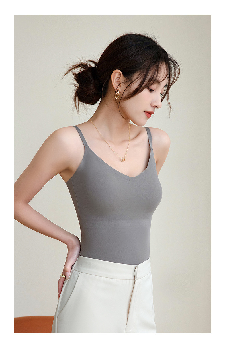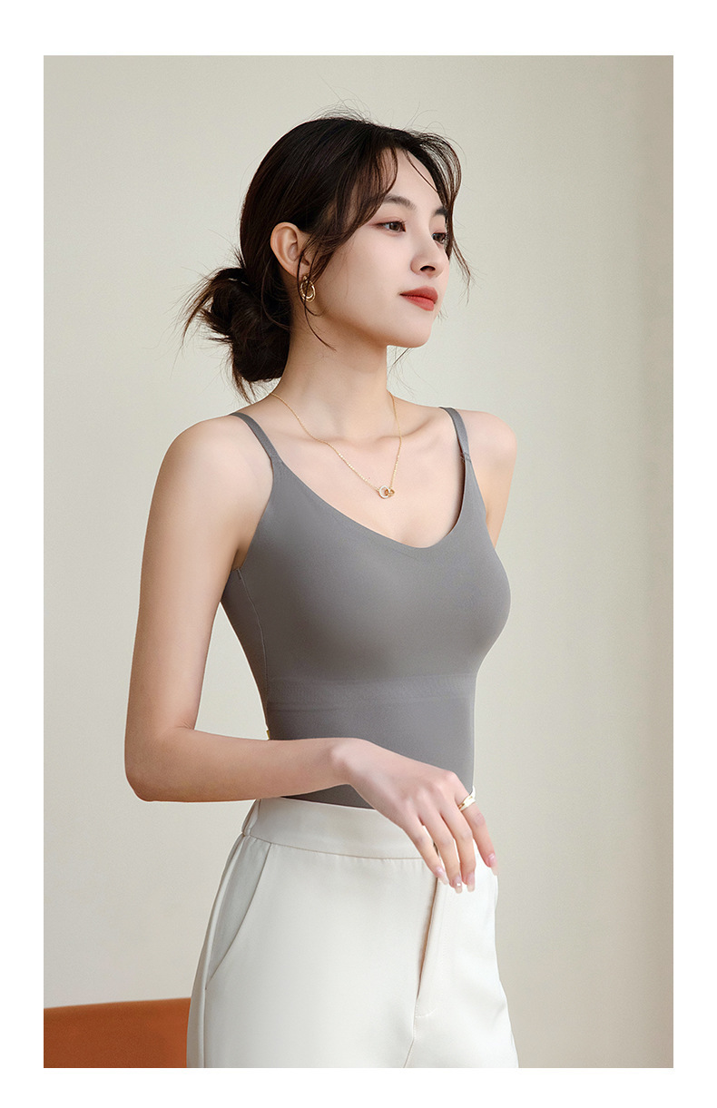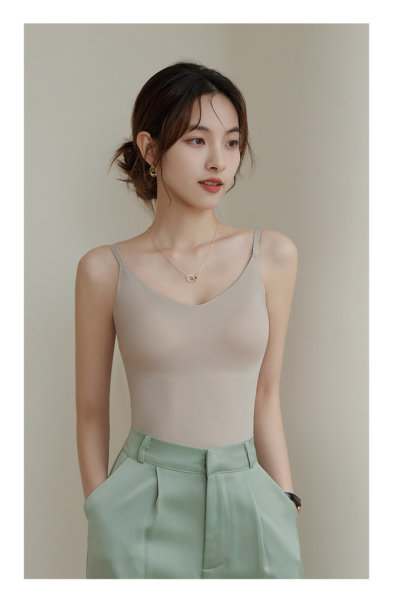 라이브 Camisole 새로 업그레이드 된 원피스 벨트 가슴 패드 푸시 업 처짐 방지 아이스 실크 원활한 뷰티 백베이스스토어 가기