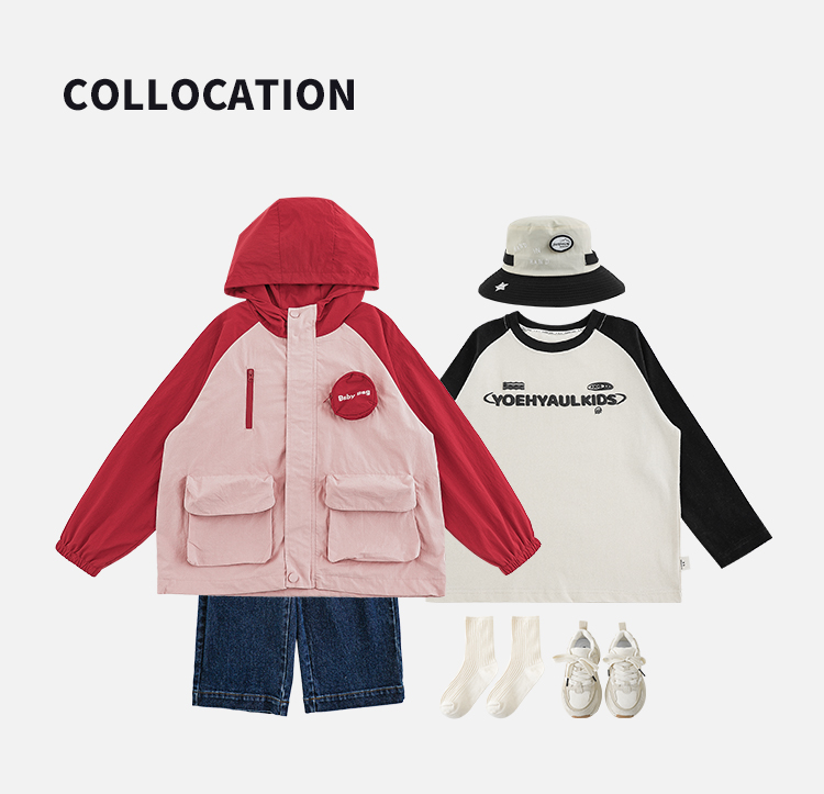 Wulibu Yinan 소년의 가을 멋진 후드 재킷 2025 새로운 어린이 컬러 매칭 포켓 아웃도어 재킷 트렌디스토어 가기