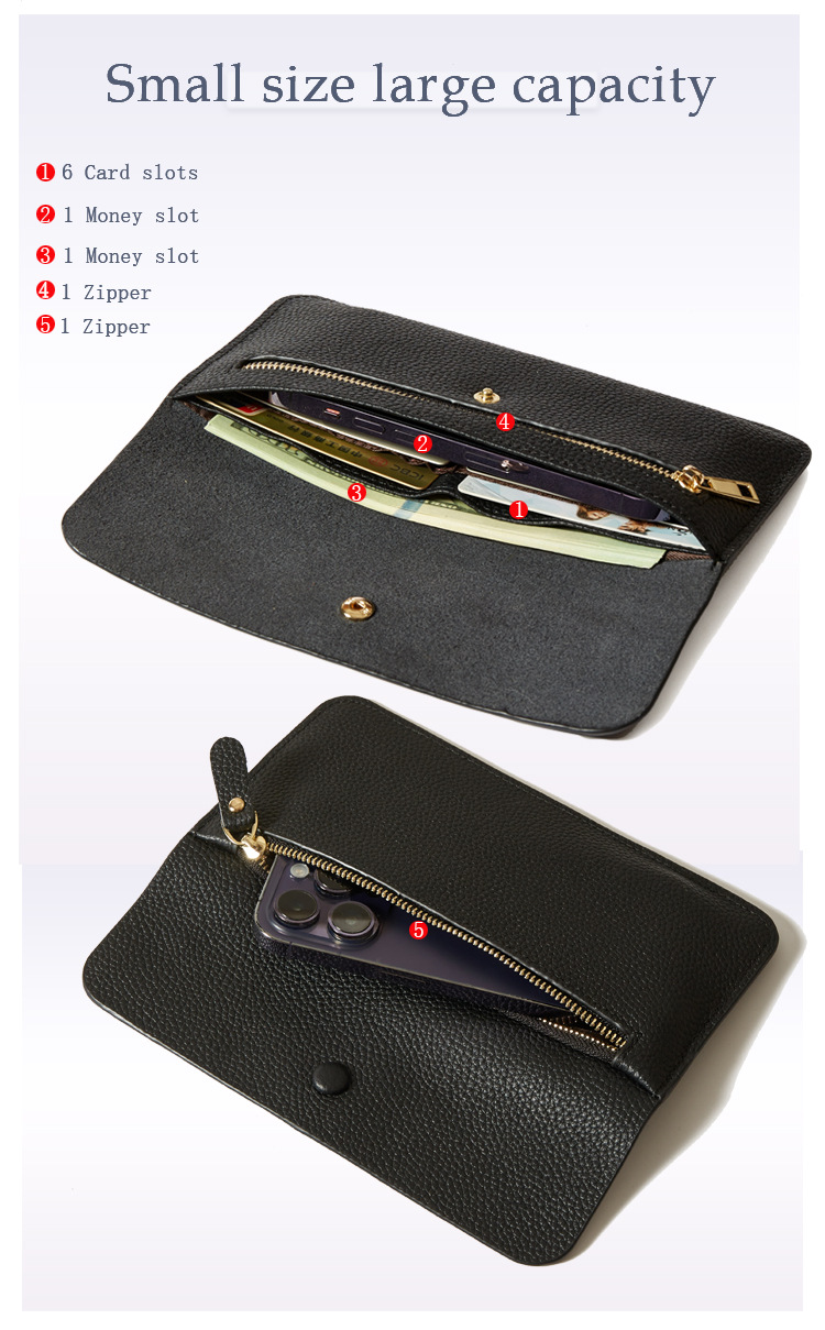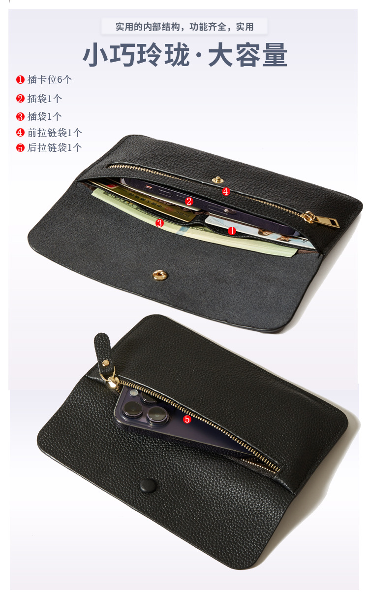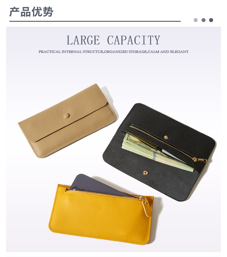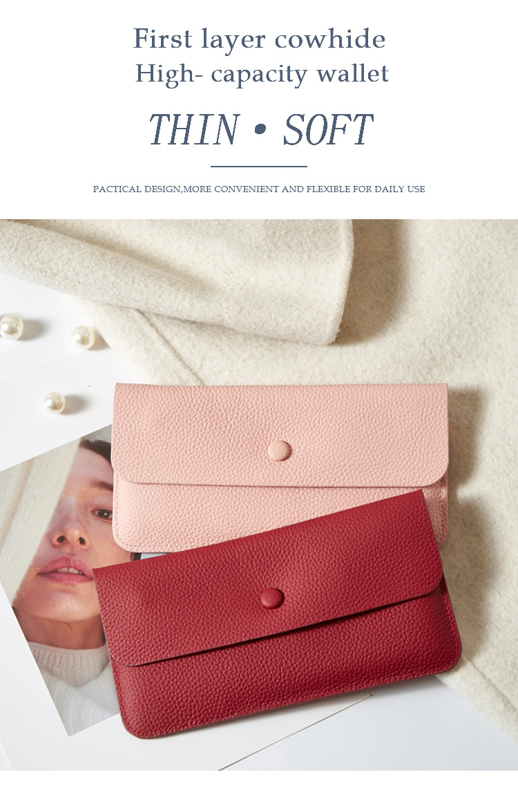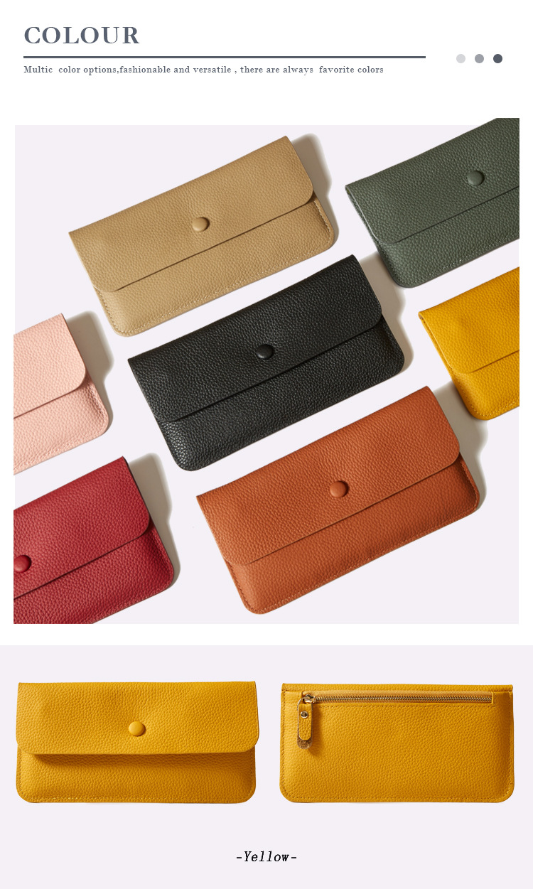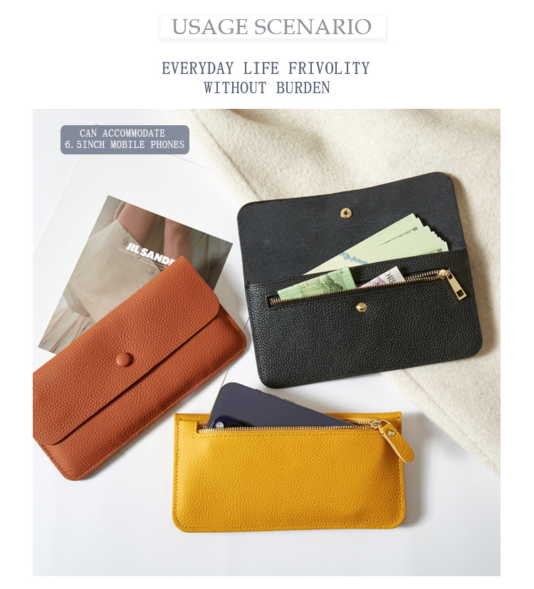 봉투 여성용 작은 지갑 여성용 노란색 긴 소 가죽 클러치 백 정품 가죽 지갑 2021 휴대 전화 용 새 모델