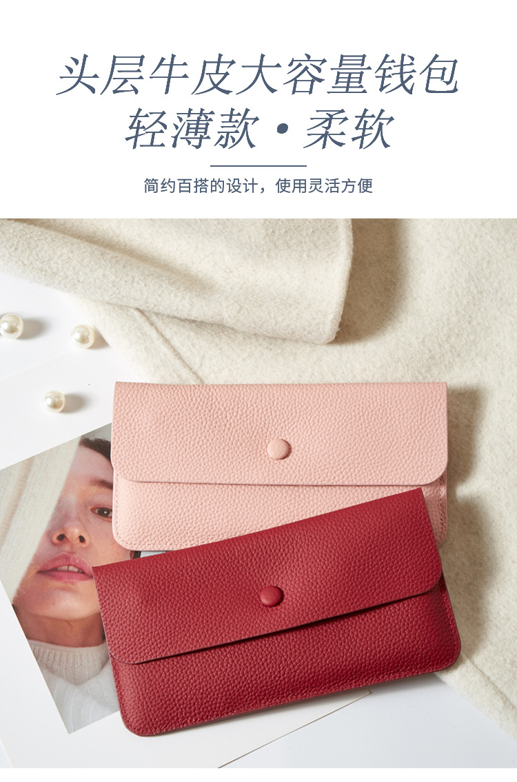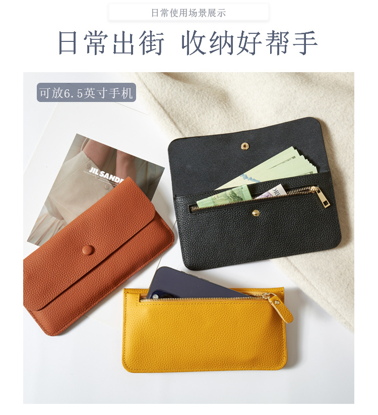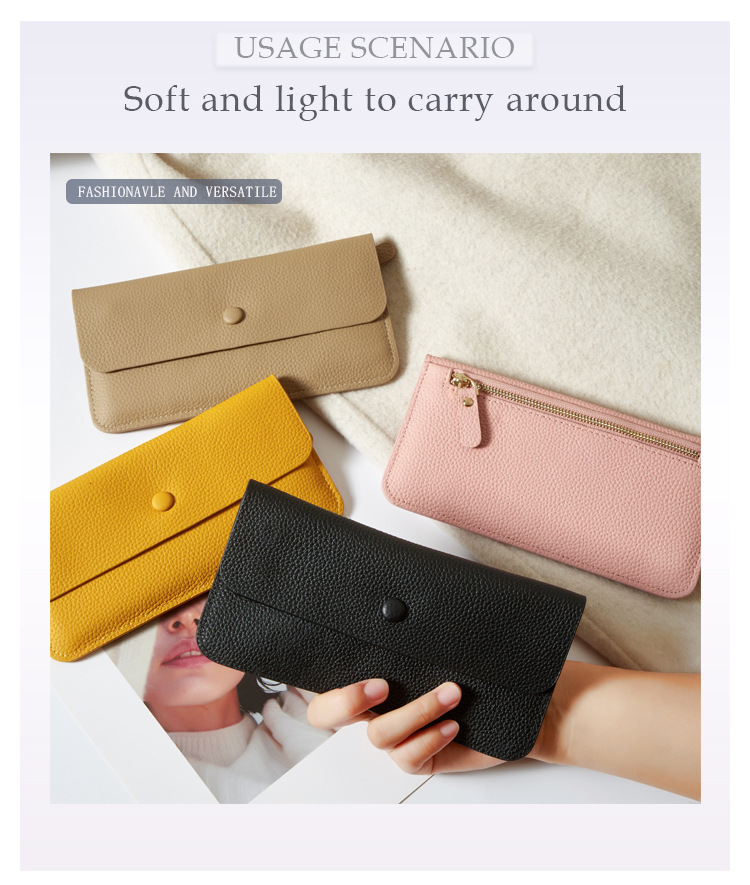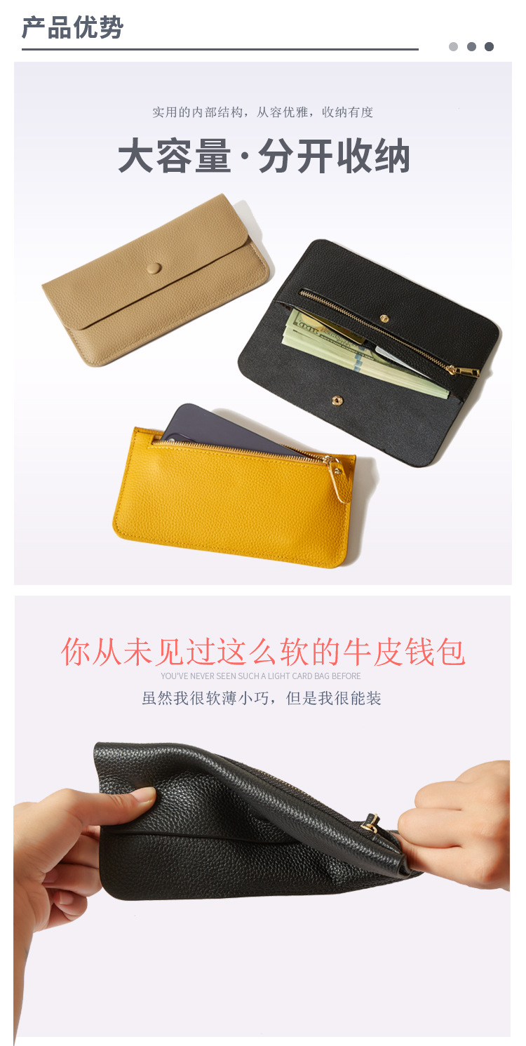 봉투 여성용 작은 지갑 여성용 노란색 긴 소 가죽 클러치 백 정품 가죽 지갑 2021 휴대 전화 용 새 모델스토어 가기