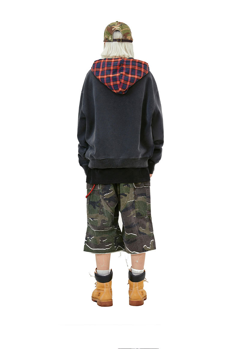가을 420g 미국 가짜 2 조각 격자 무늬 무거운 오래 된 가을과 겨울 후드 지퍼 전국 패션 브랜드 스웨터 남성과 여성스토어 가기