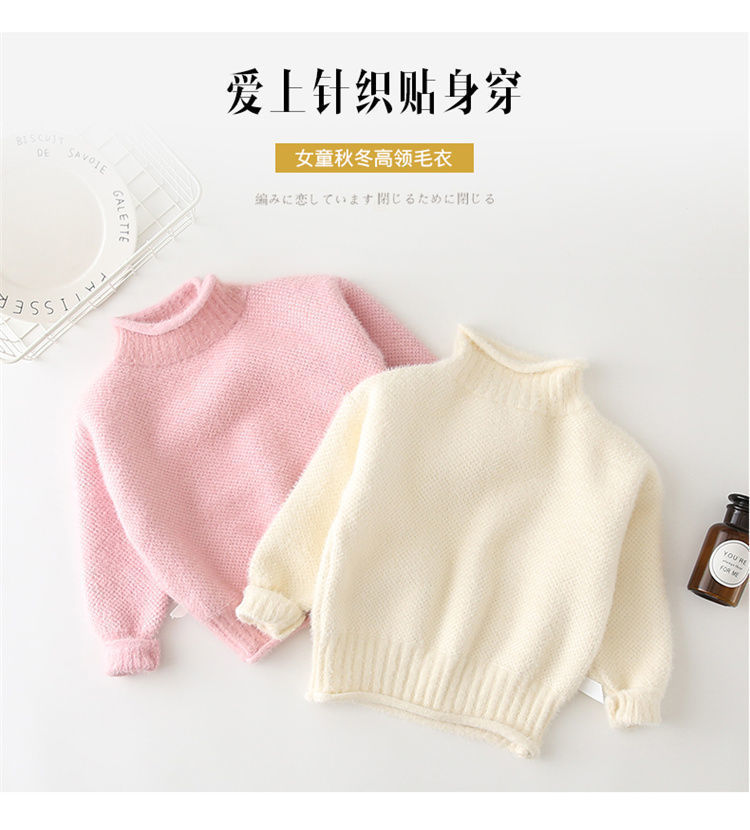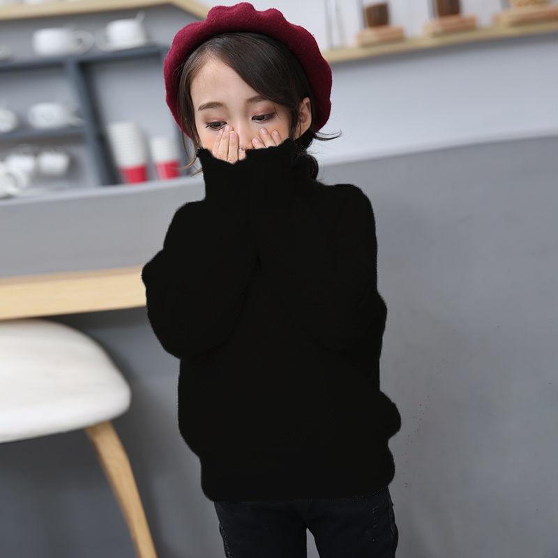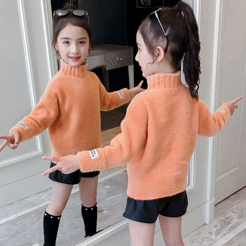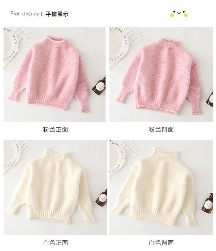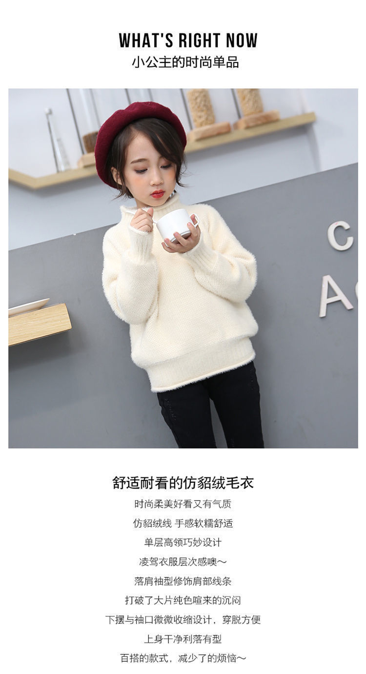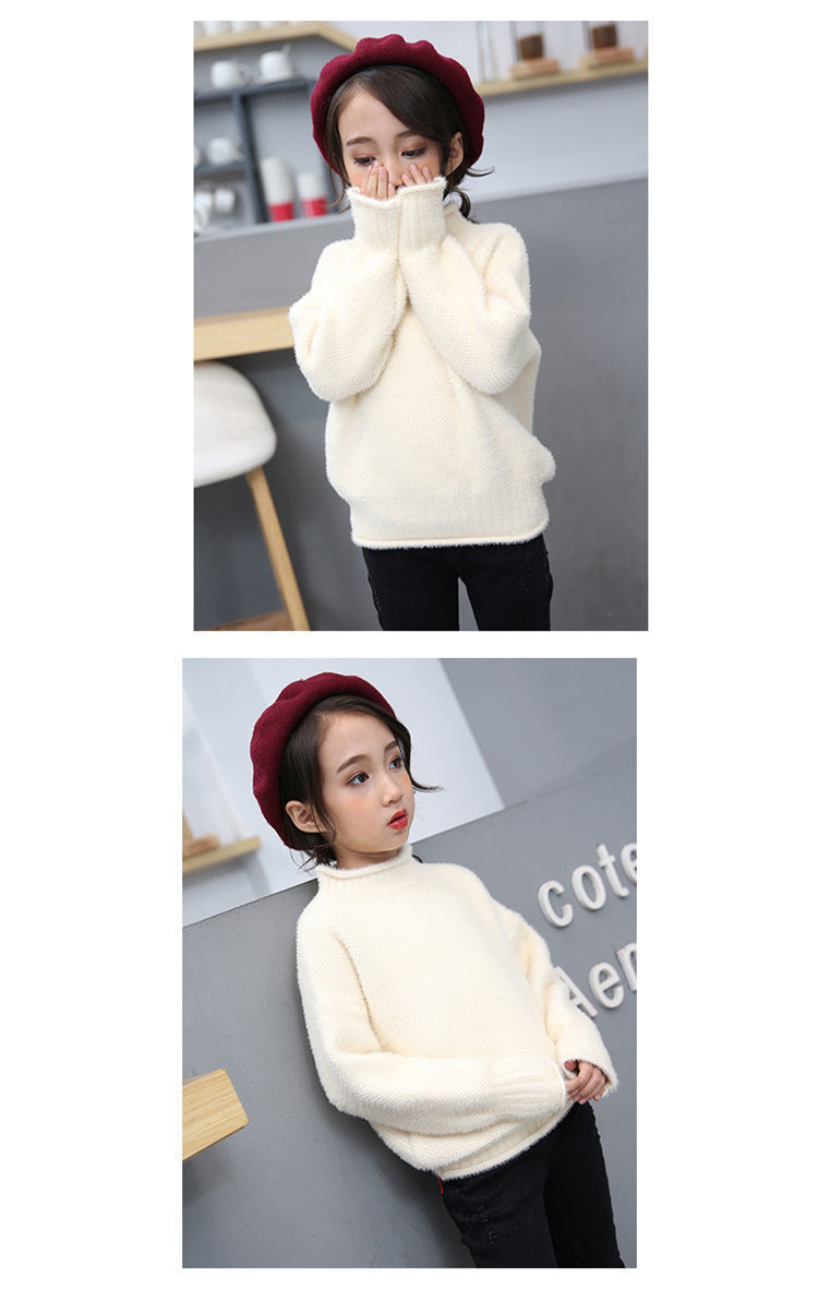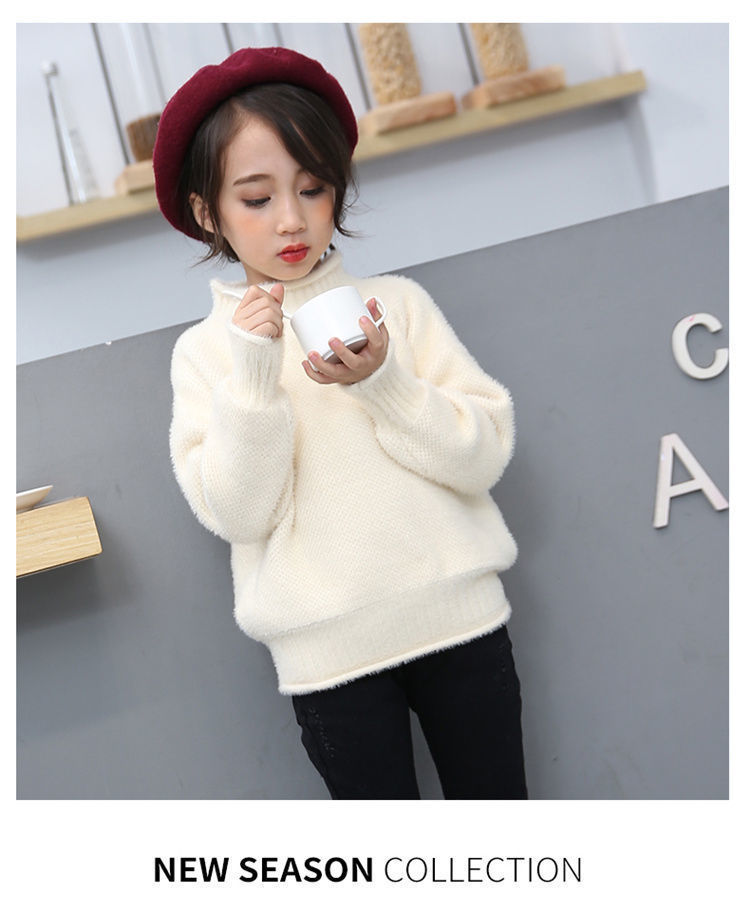 2023 새로운 걸스 밍크 벨벳 어린이 스웨터 한국 니트 기모 두꺼운 베이스 셔츠 화이트 터틀넥 스웨터스토어 가기