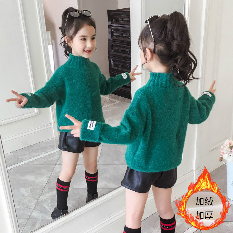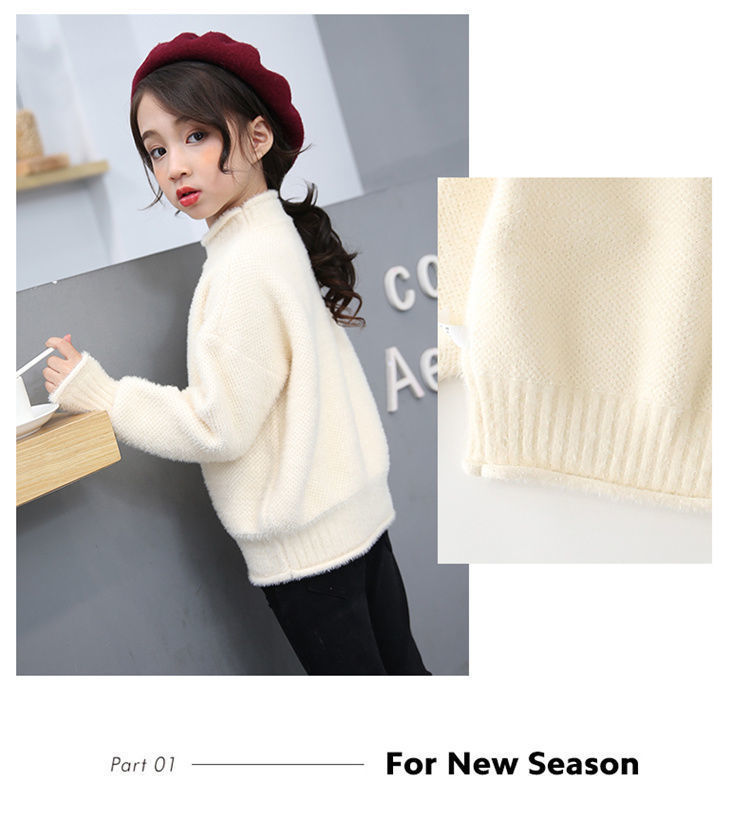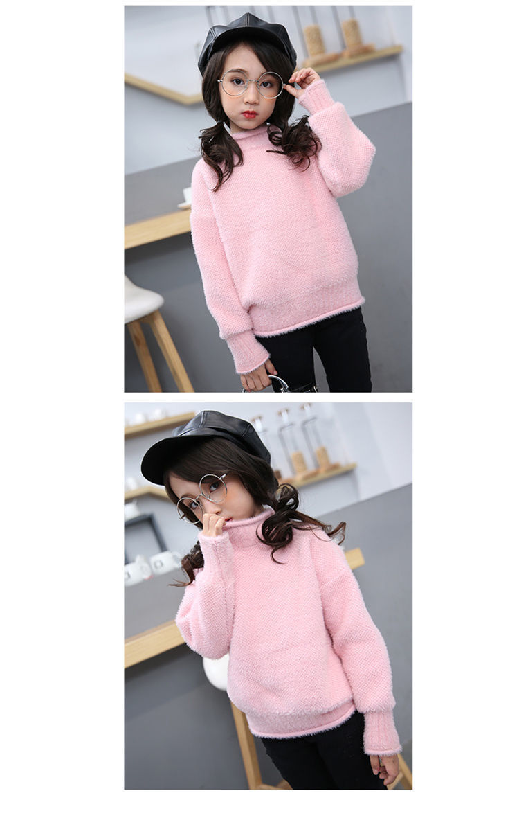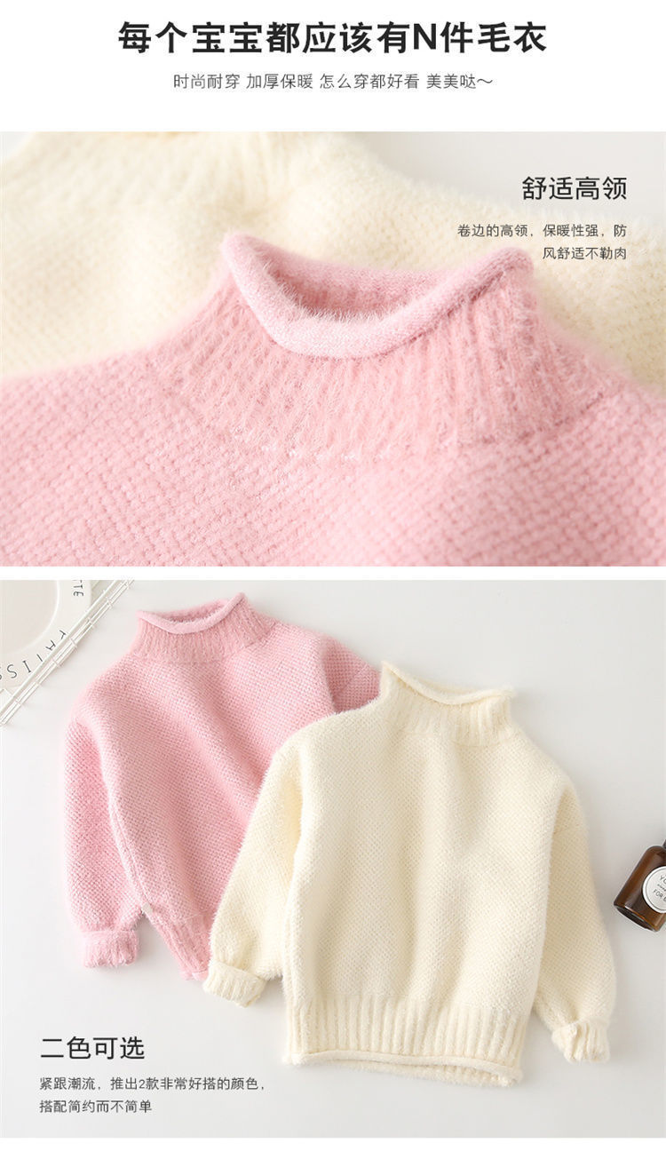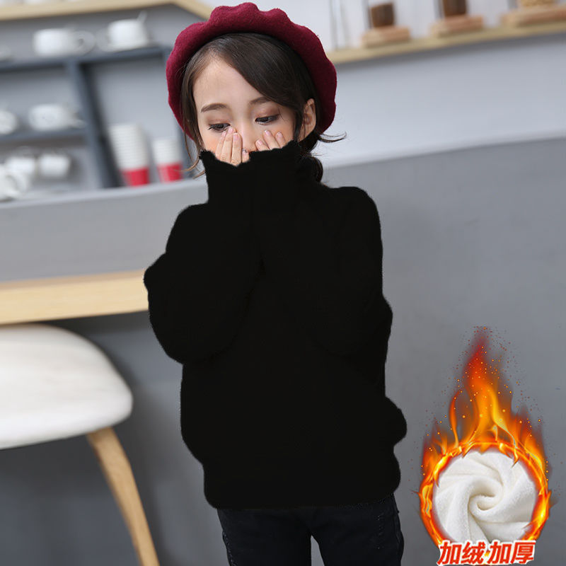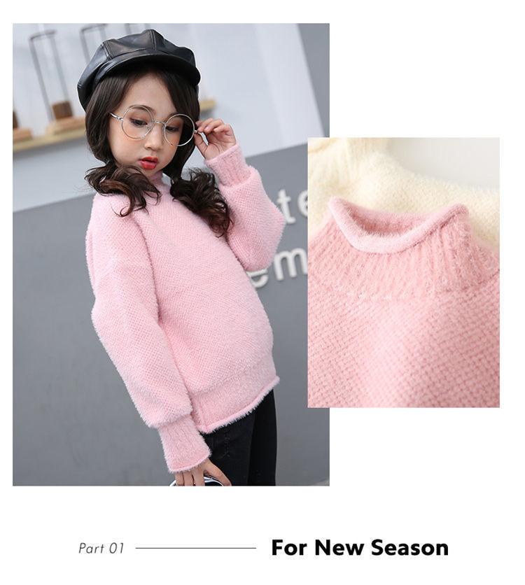 2023 새로운 걸스 밍크 벨벳 어린이 스웨터 한국 니트 기모 두꺼운 베이스 셔츠 화이트 터틀넥 스웨터스토어 가기