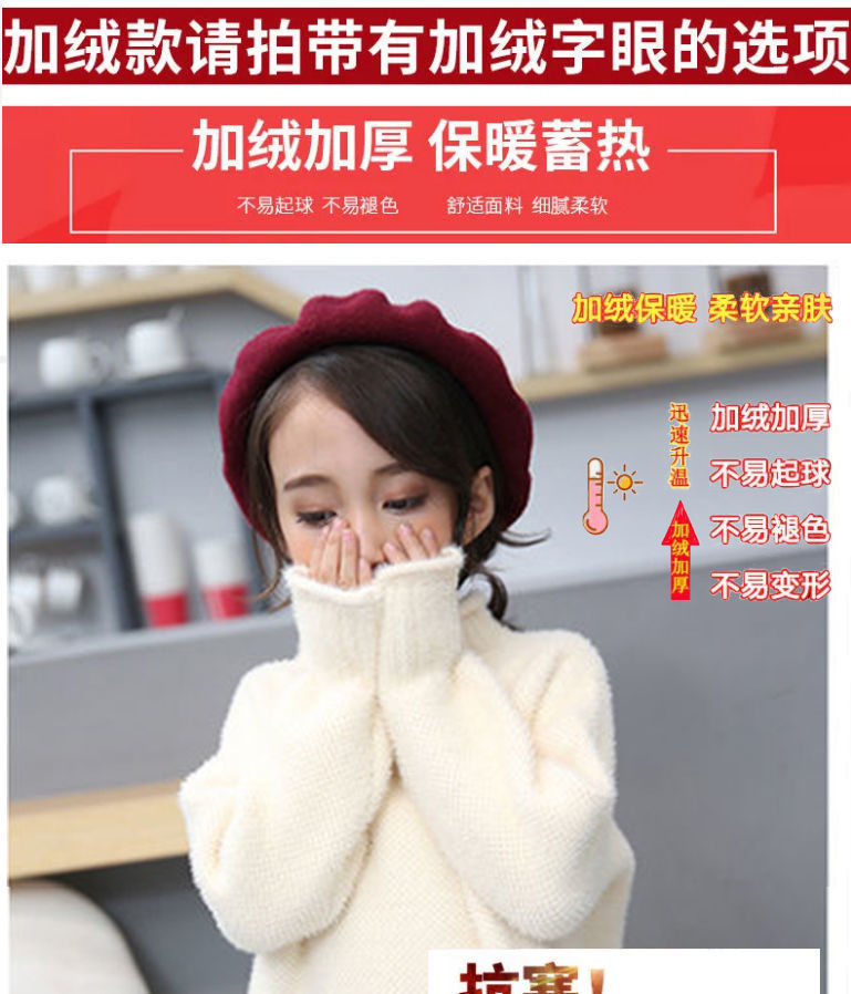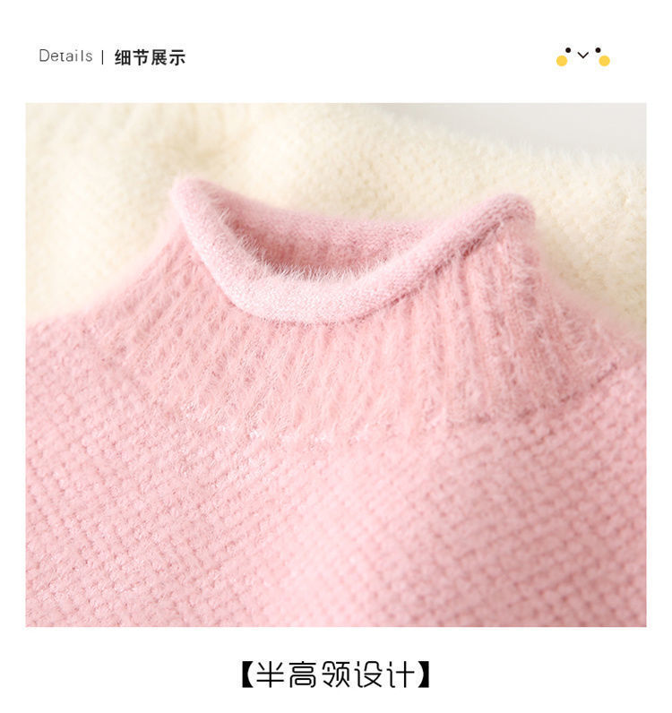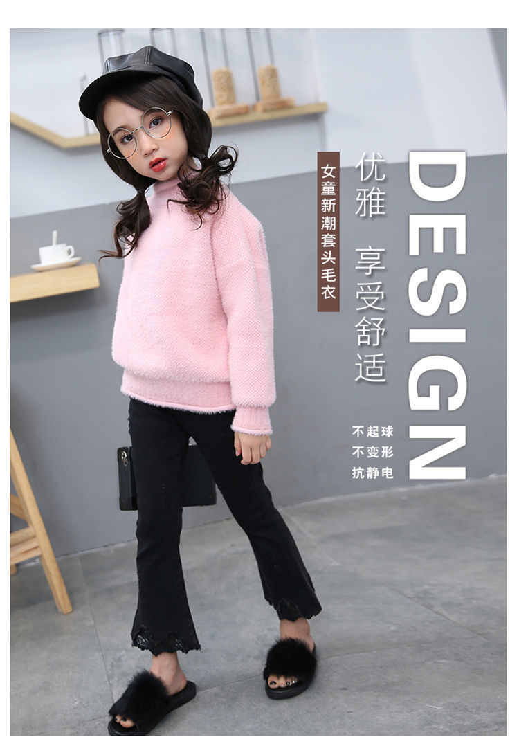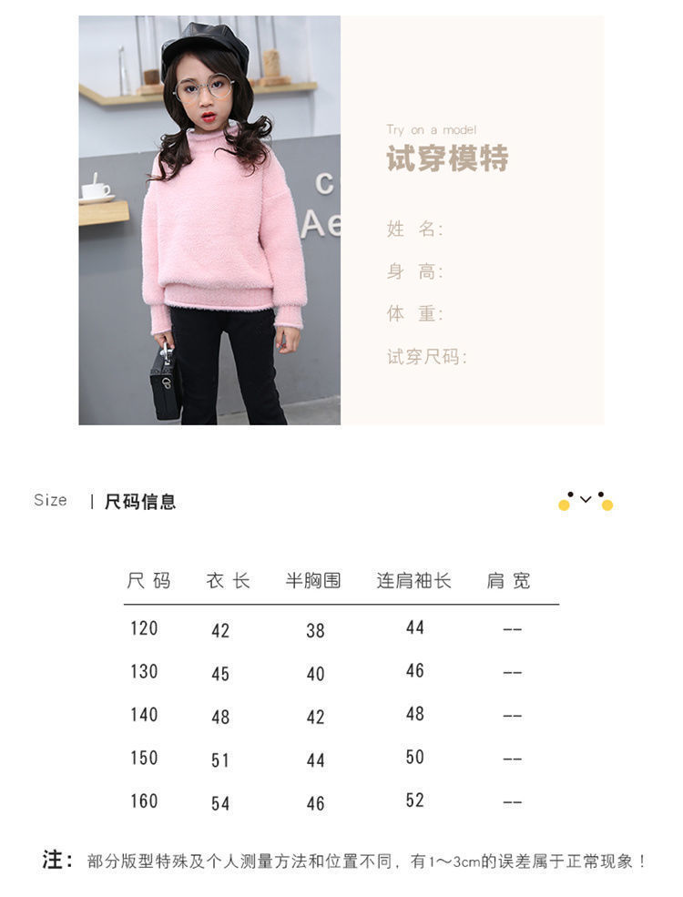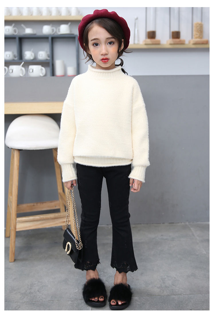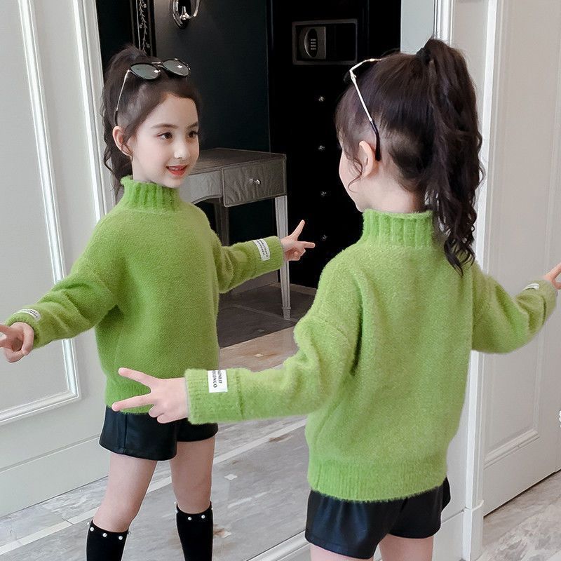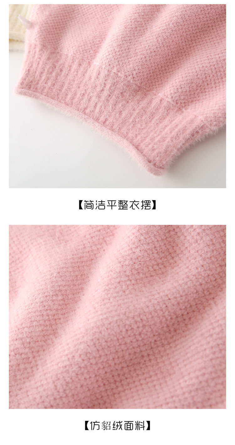2023 새로운 걸스 밍크 벨벳 어린이 스웨터 한국 니트 기모 두꺼운 베이스 셔츠 화이트 터틀넥 스웨터스토어 가기