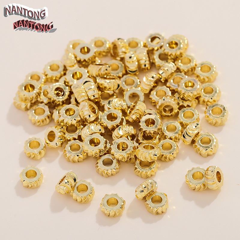 구리 도금 리얼 골드 플랫 시미 터 비드 휠 스페이서 DIY 팔찌 배치 꽃 구슬 목걸이 액세서리스토어 가기