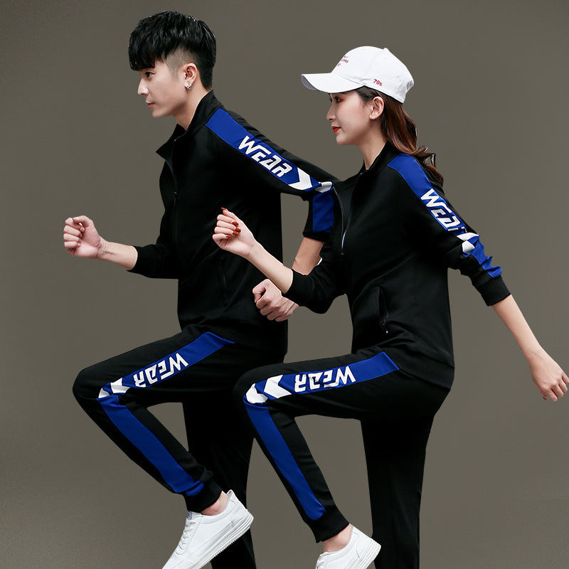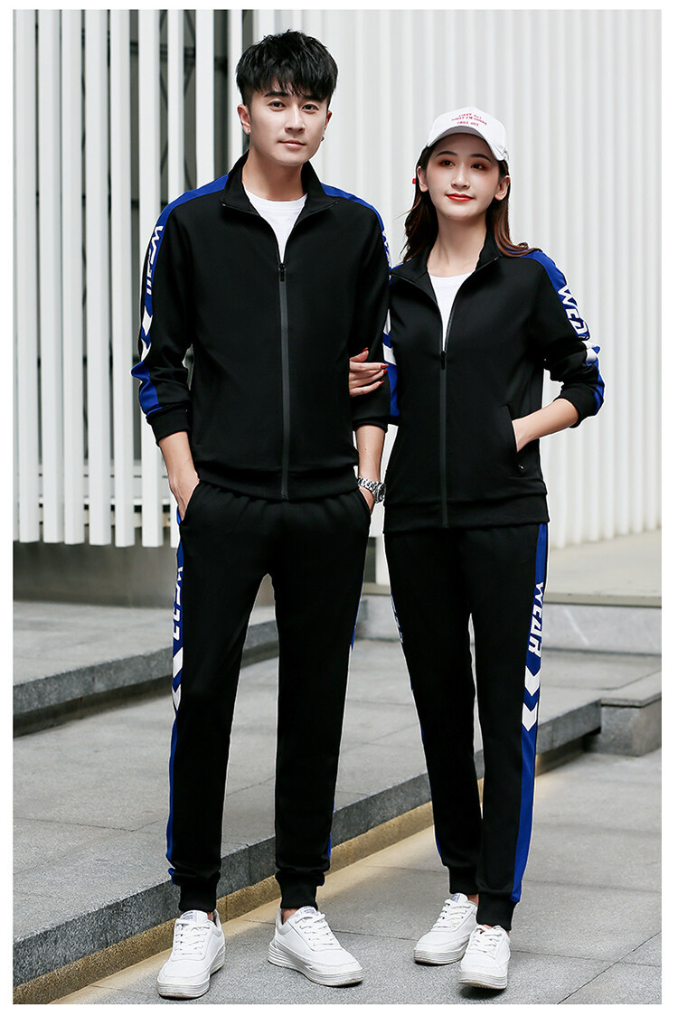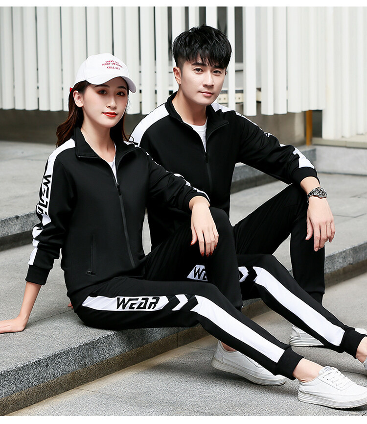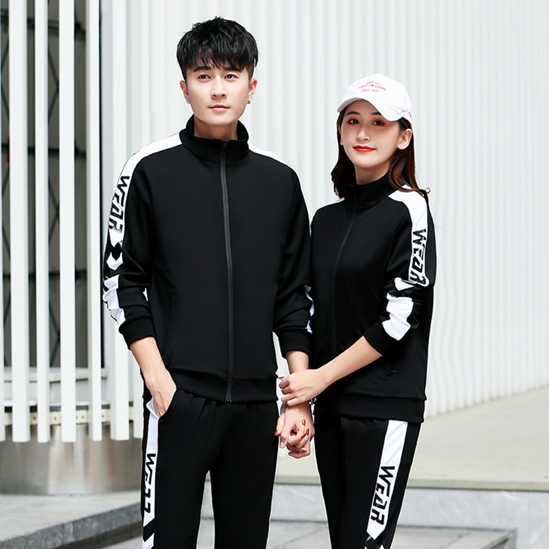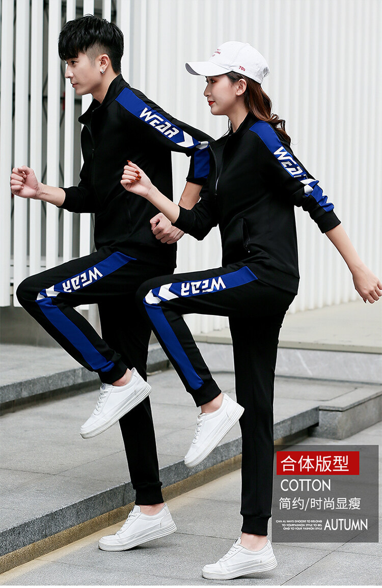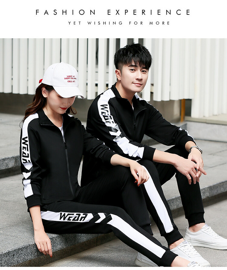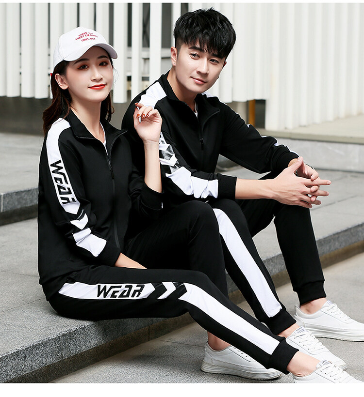 한국 실크 스포츠 세트 남자 봄과 가을 새로운 남자와 여자 운동복 커플의 달리기 옷 캐주얼 느슨한 투피스 세트