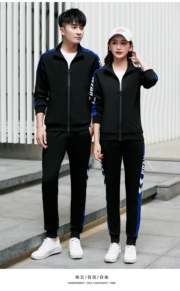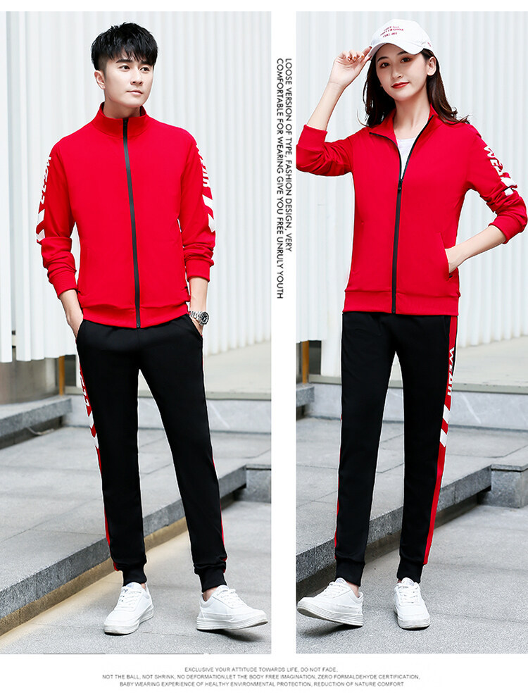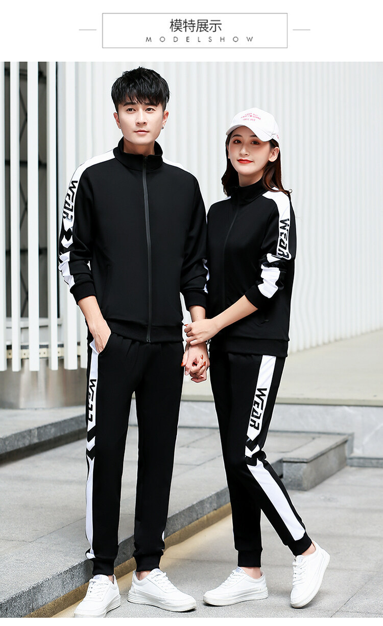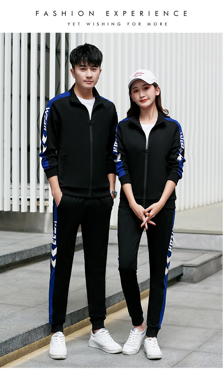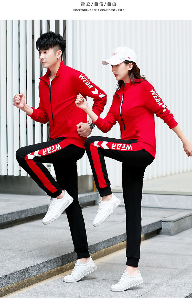 한국 실크 스포츠 세트 남자 봄과 가을 새로운 남자와 여자 운동복 커플의 달리기 옷 캐주얼 느슨한 투피스 세트