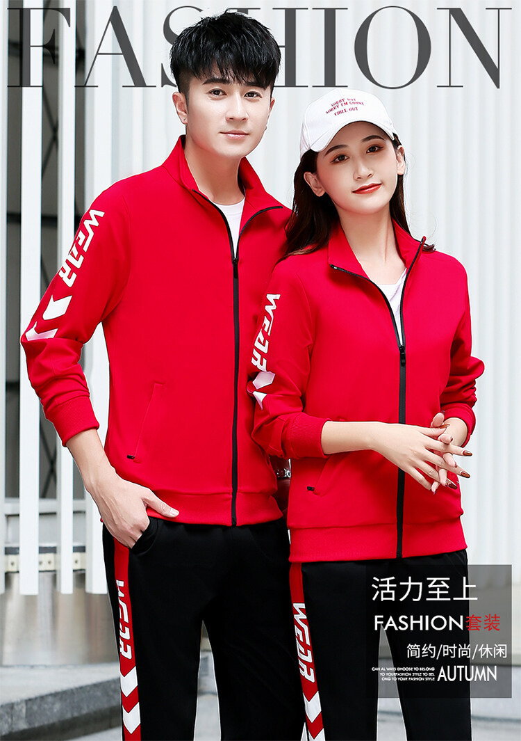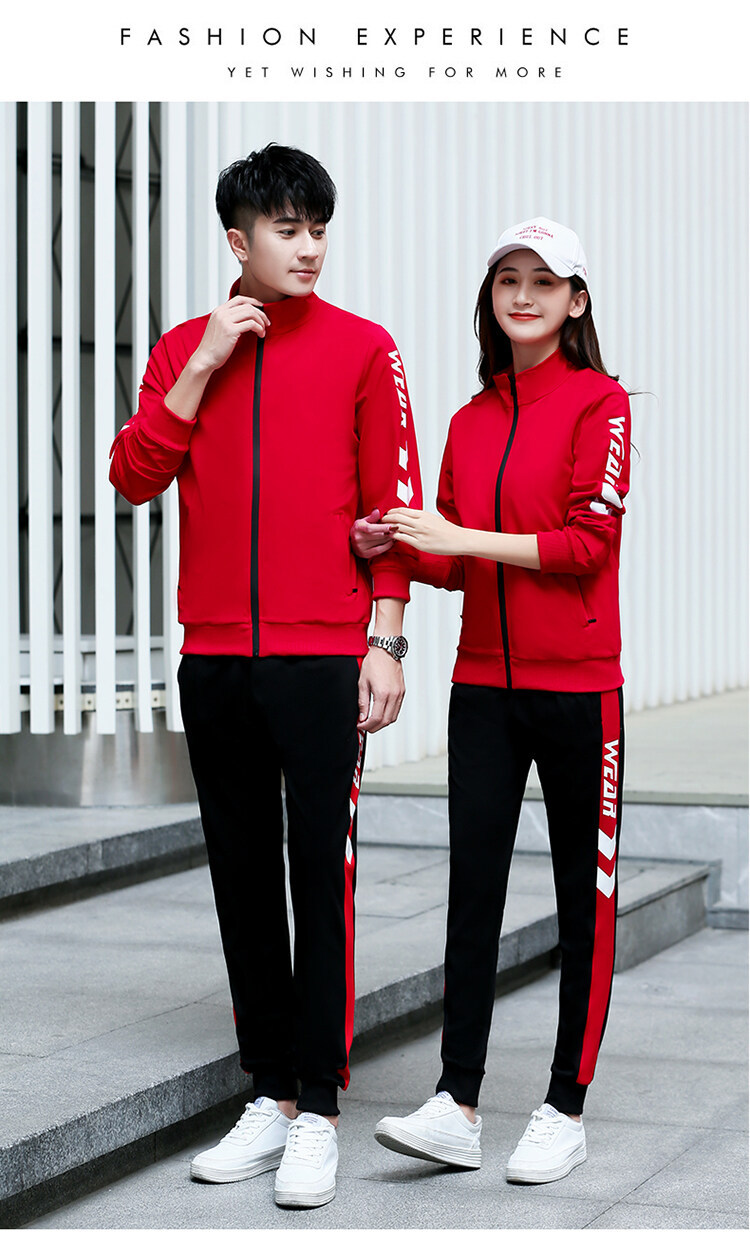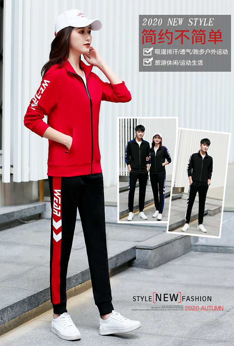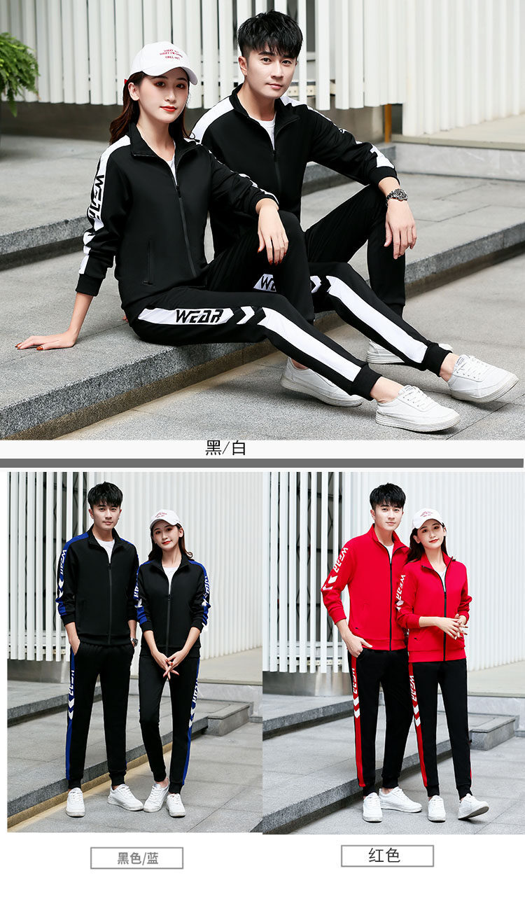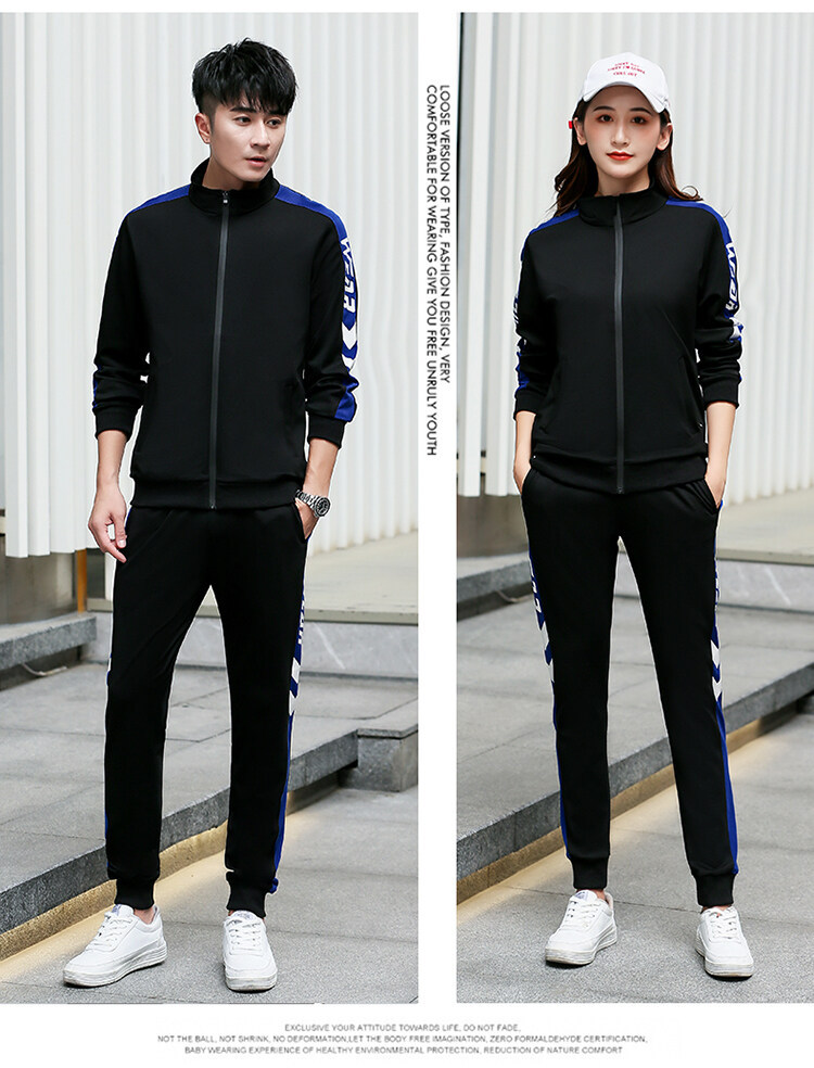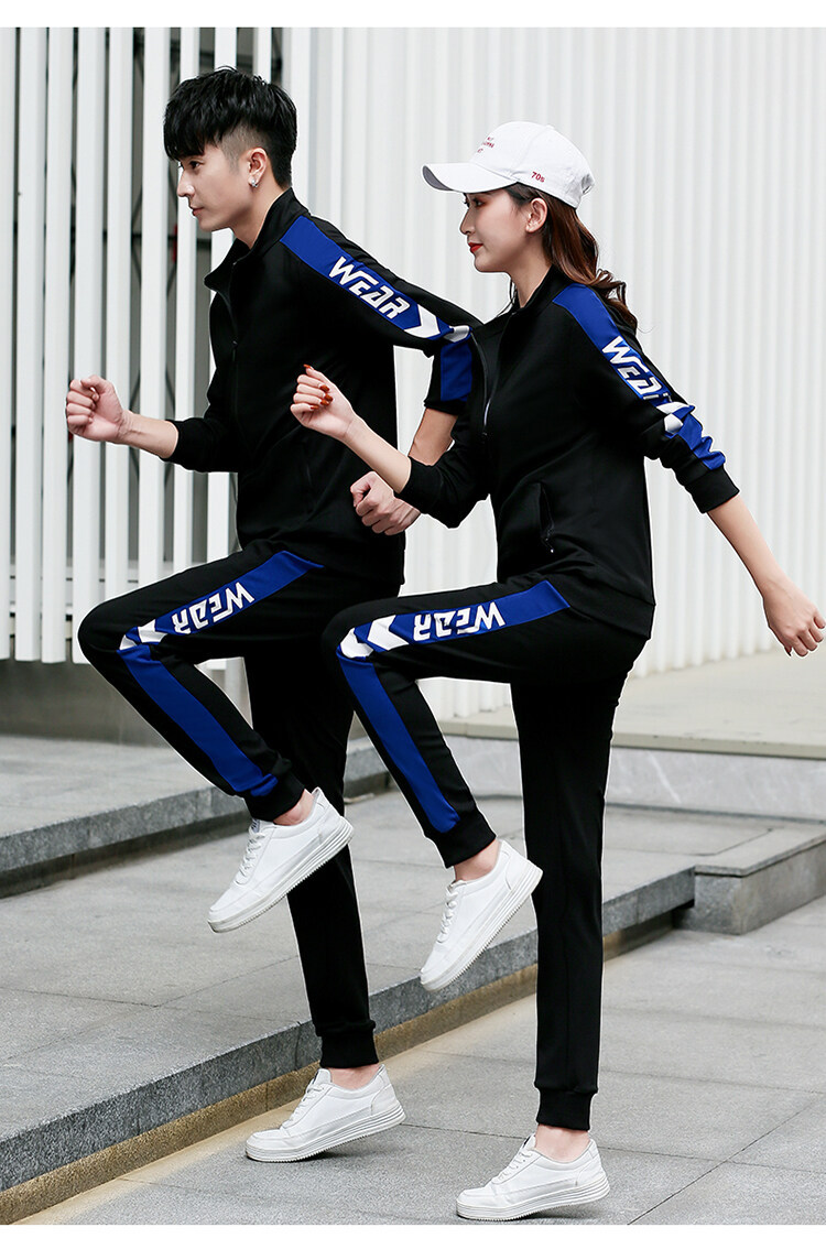 한국 실크 스포츠 세트 남자 봄과 가을 새로운 남자와 여자 운동복 커플의 달리기 옷 캐주얼 느슨한 투피스 세트