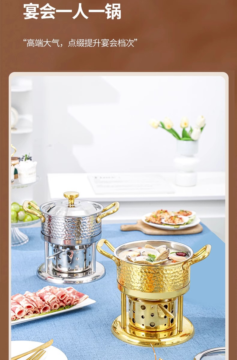 304 스테인레스 스틸 작은 냄비 1 인 1 포트 호텔 단일 냄비 가정용 알코올 스토브 연소 풍선 가스 상업스토어 가기