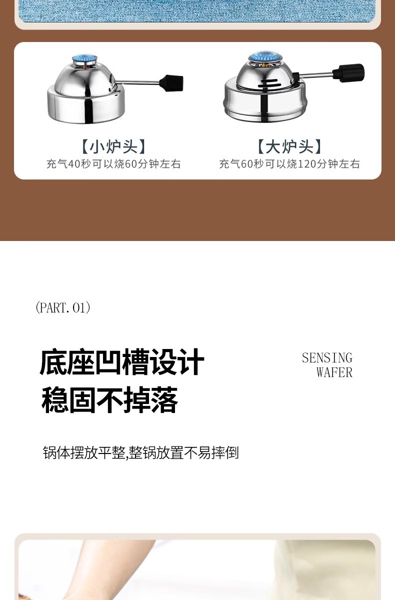 • 304 3층 강철 망치 패턴 천연 강철 뚜껑 소형 냄비(팽창식 버너)(배터리 수명 120분)