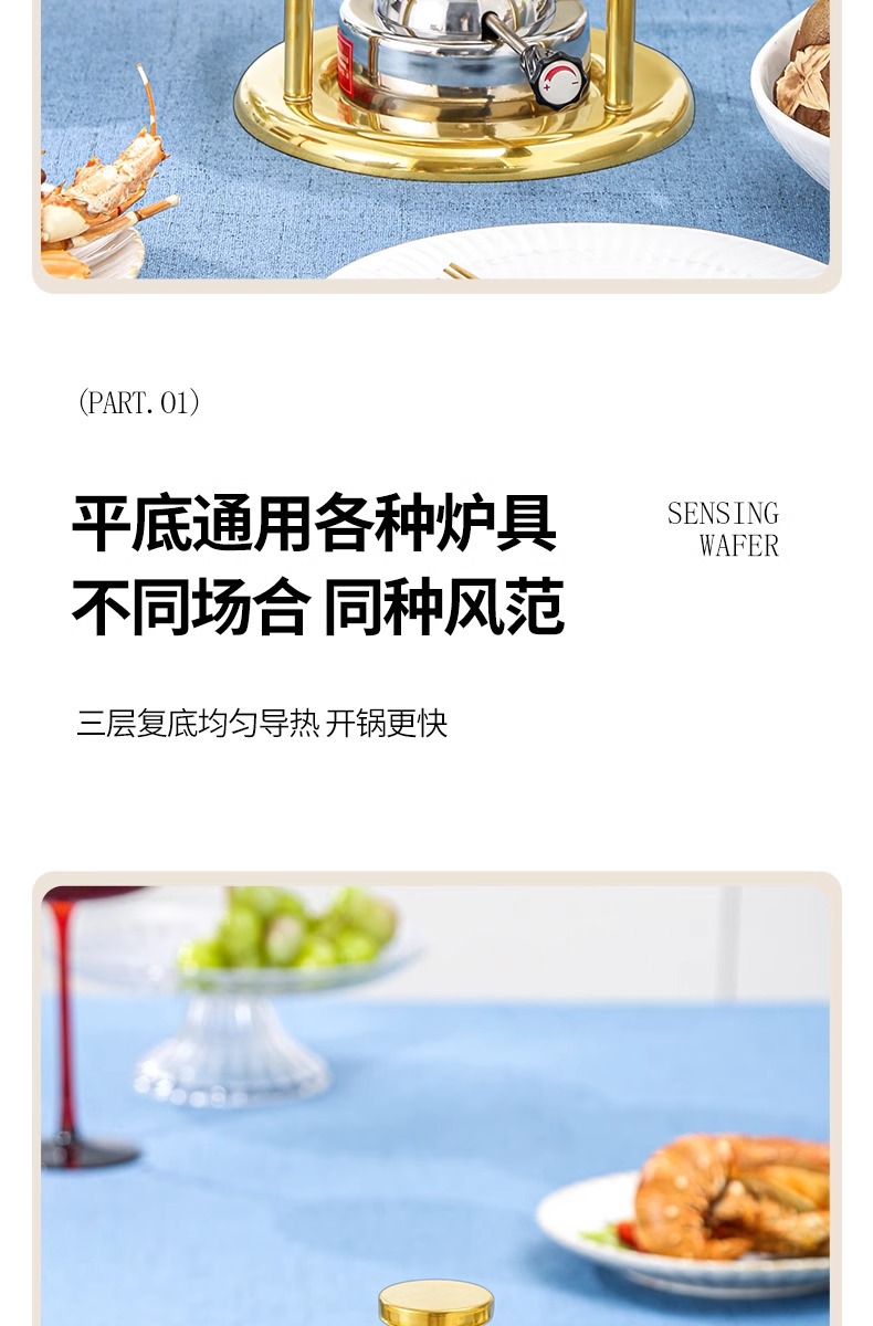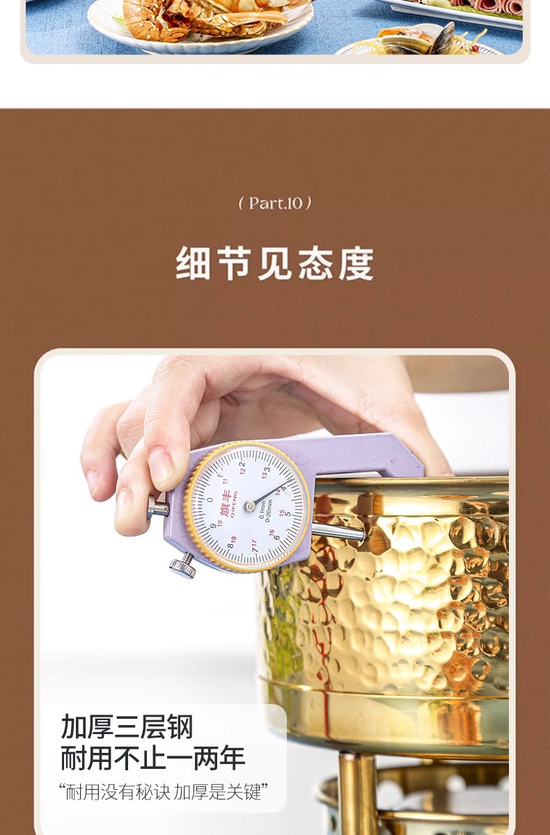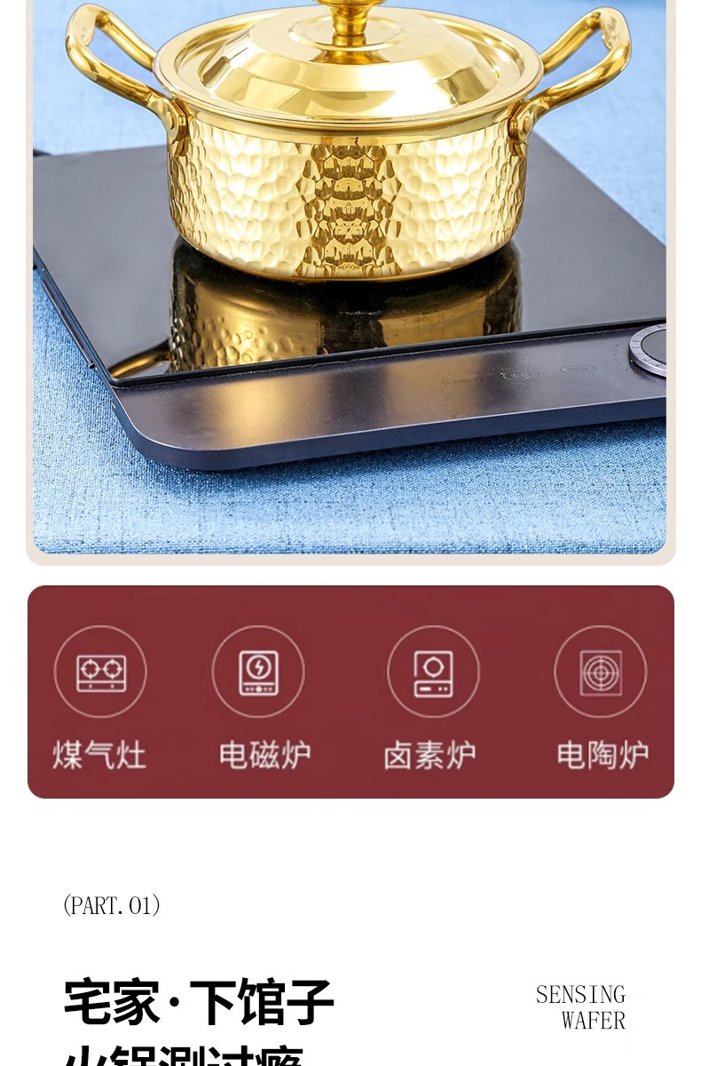 • 304 3층 강철 망치 패턴 황금 강철 뚜껑 작은 냄비(팽창식 버너)(배터리 수명 120분)
