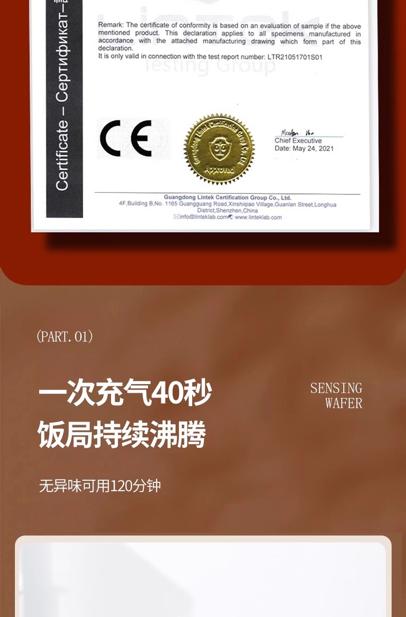 • 304 3층 강철 망치로 쳐진 황금색 유리 뚜껑 작은 냄비(팽창식 버너)(배터리 수명 120분)
