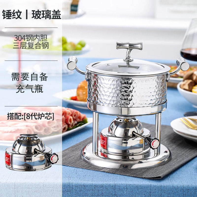 304 스테인레스 스틸 작은 냄비 1 인 1 포트 호텔 단일 냄비 가정용 알코올 스토브 연소 풍선 가스 상업