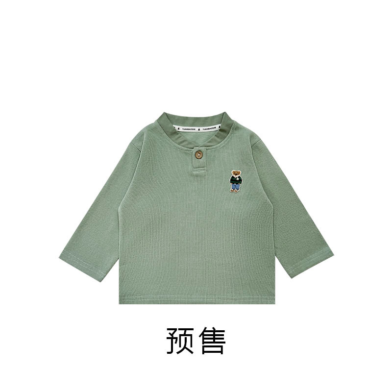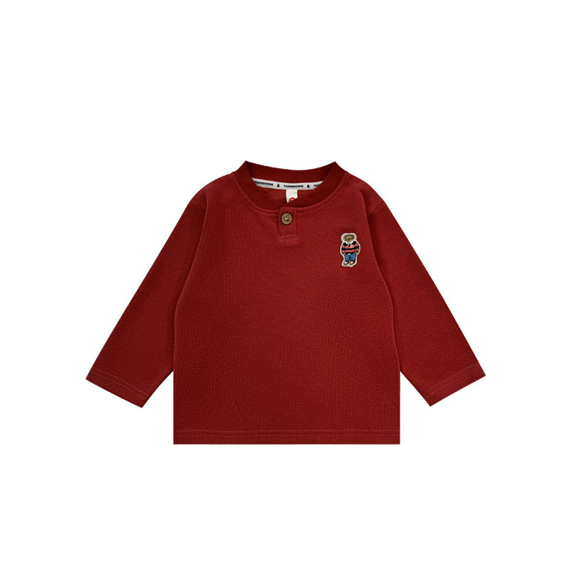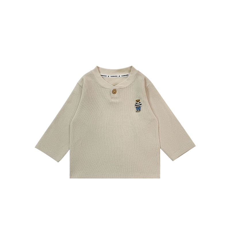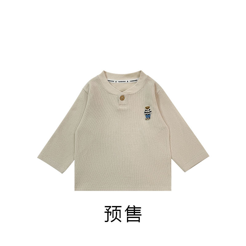 어린이 긴팔 티셔츠 Yuanbao 형제 2025 봄 새 소년 앞 오픈 칼라 탑 아기 느슨한 옷