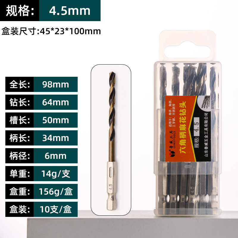 • 4.5mm 육각 생크 트위스트 드릴 비트, 상자당 10개, 상자당 156g