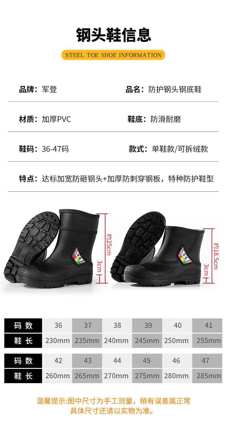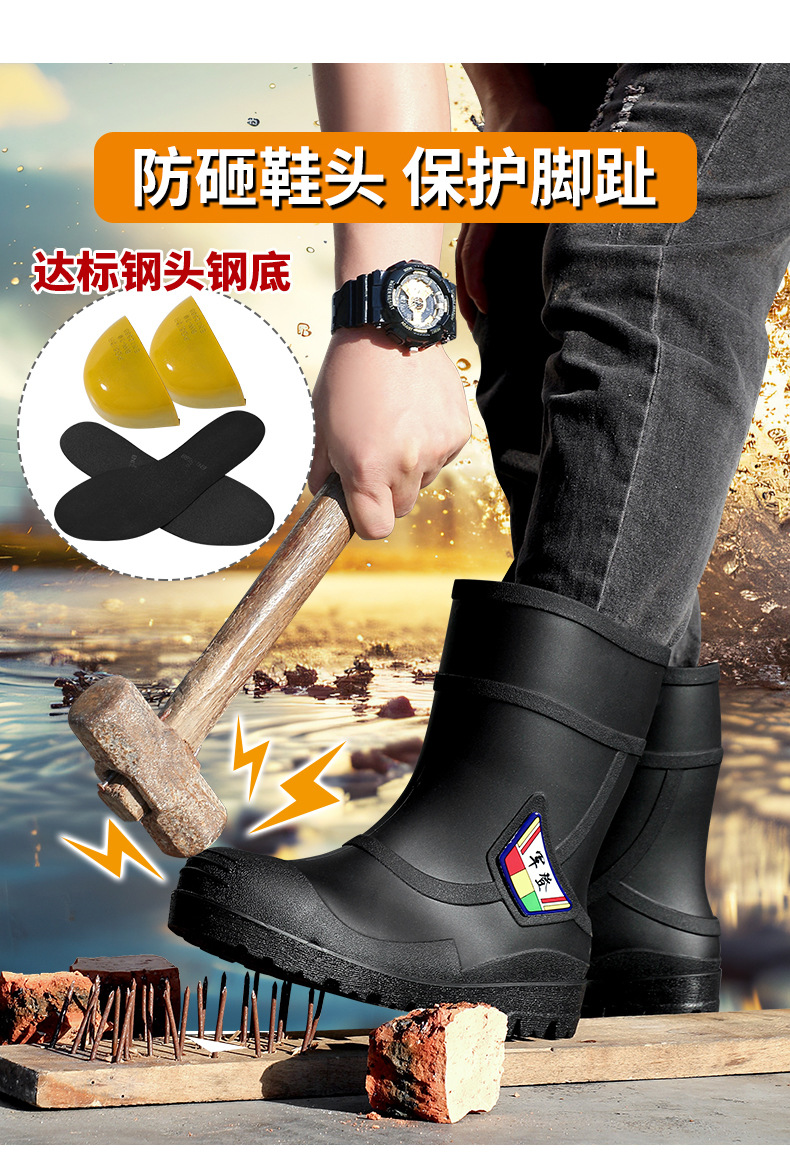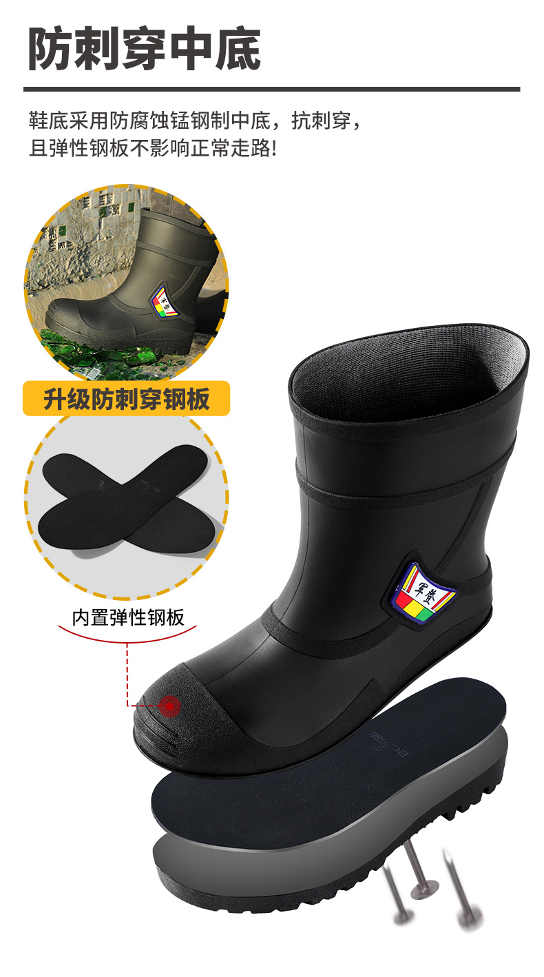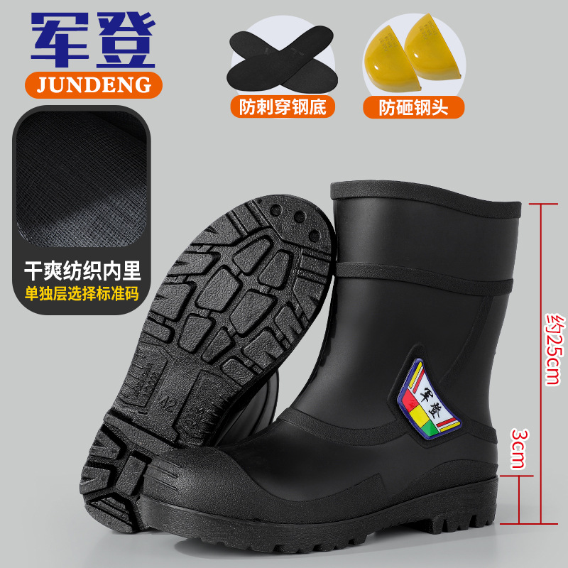 스매싱 방지 및 찌르기 방지 워터 슈즈 남성 사이트 안전 장화 방지 찌르기 방지 부츠 방수 부츠 스틸 발가락 스틸 바닥 비 부츠 남성용 노동 보호 신발스토어 가기