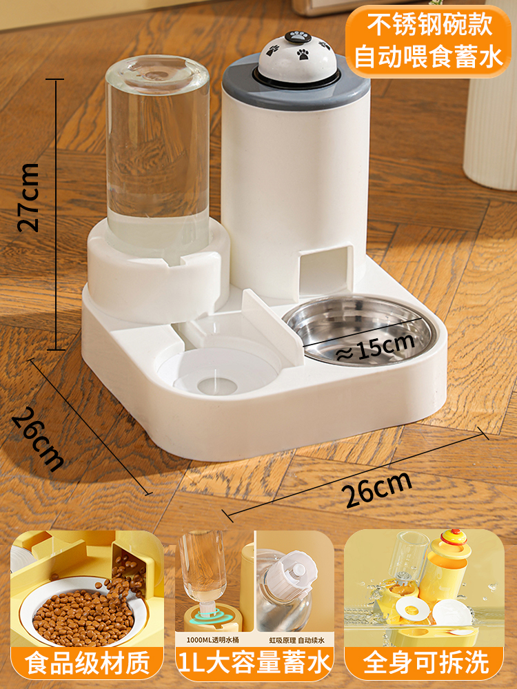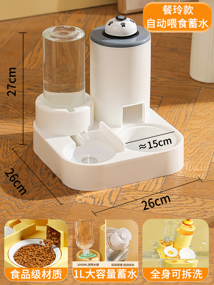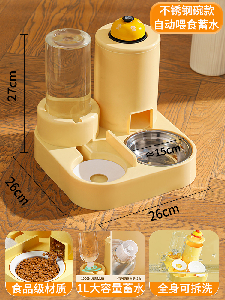 • 강철그릇이 달린 자동급식기 - 크림옐로우에는 벨이 달려있습니다. [자동물보관 및 먹이주기]