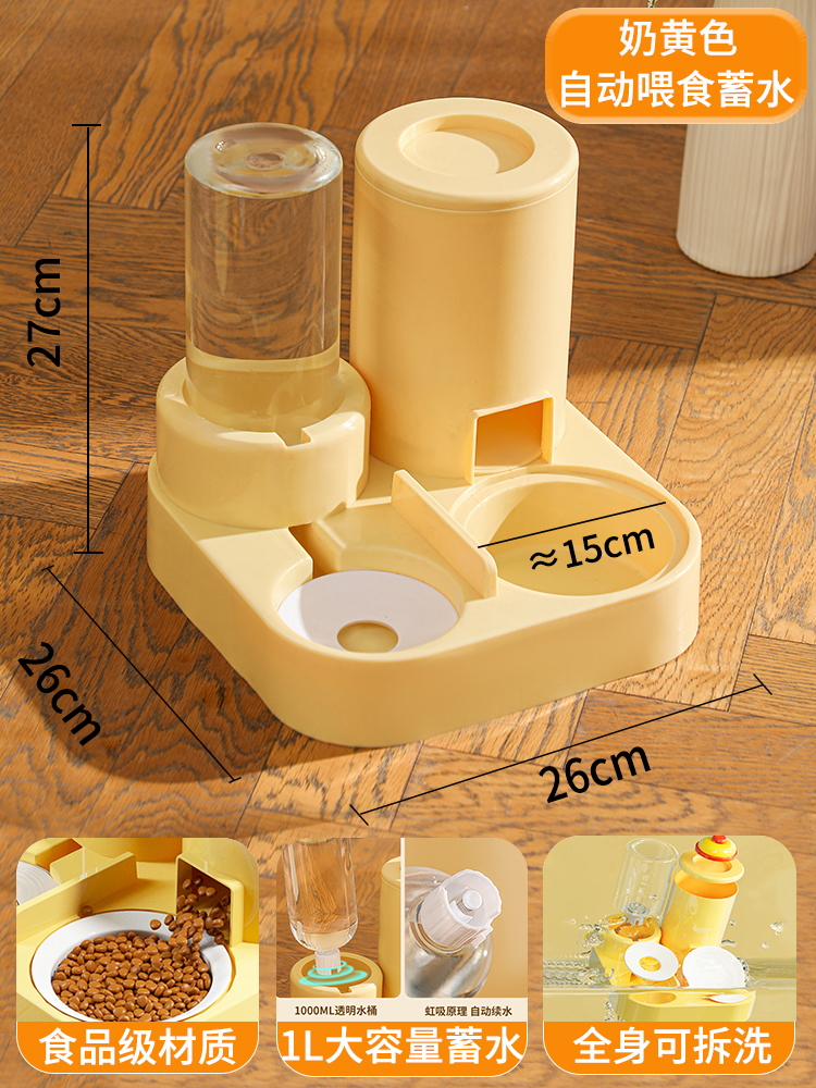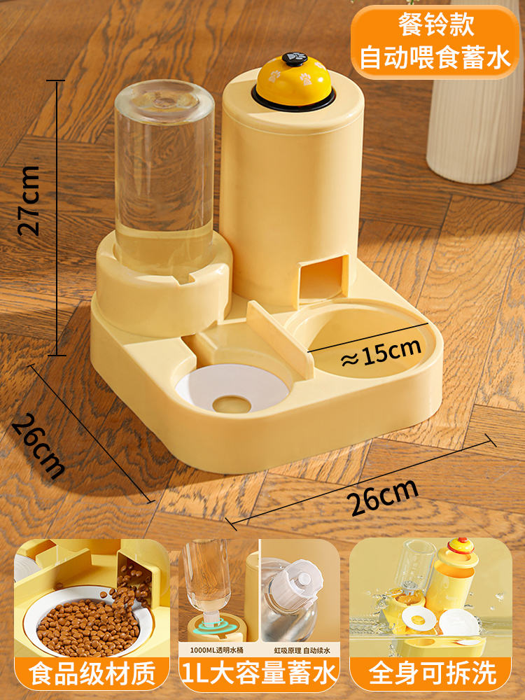 • 벨을 누르면 자동 급식 - 크림 옐로우 [자동 물 저장 및 급식]
