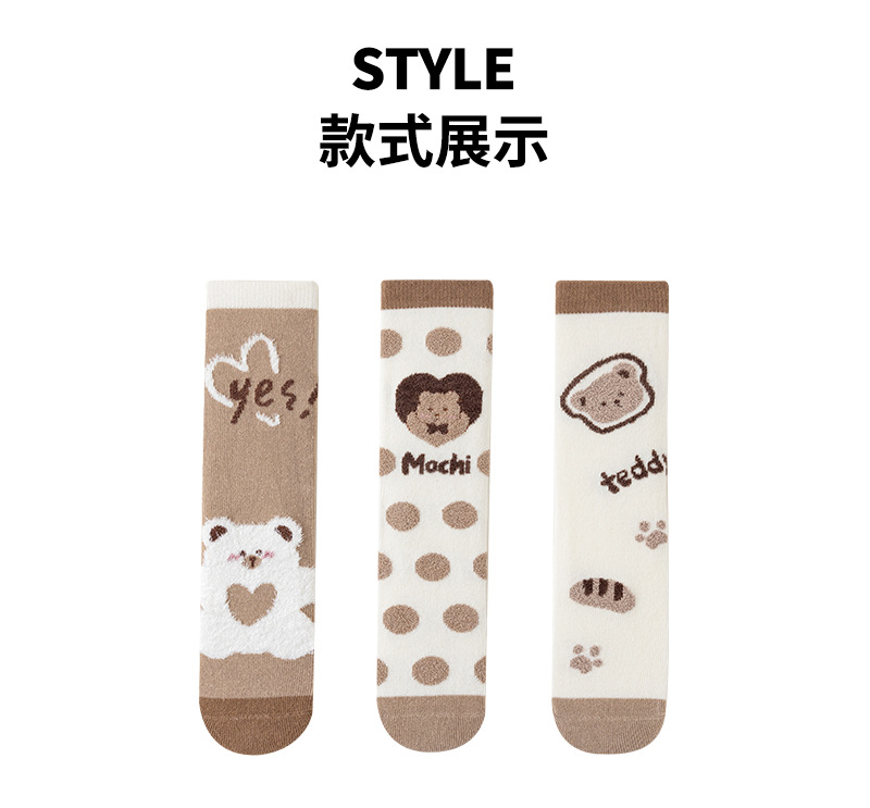 일반 사이즈 아동 양말 2025 가을 겨울 신상 만화 곰돌이 남아용 양말 아동 종아리 양말 도매스토어 가기