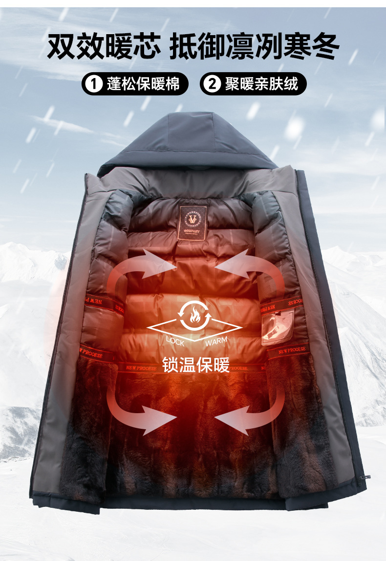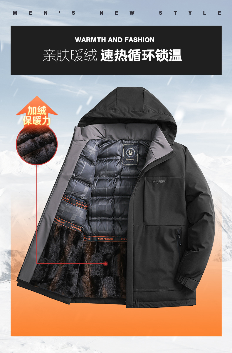남성용 기모 코튼 패딩 코트 겨울 새로운 중년 및 노인 두꺼운 따뜻한 후드 패딩 코트 남성용 아버지면 패딩 코트