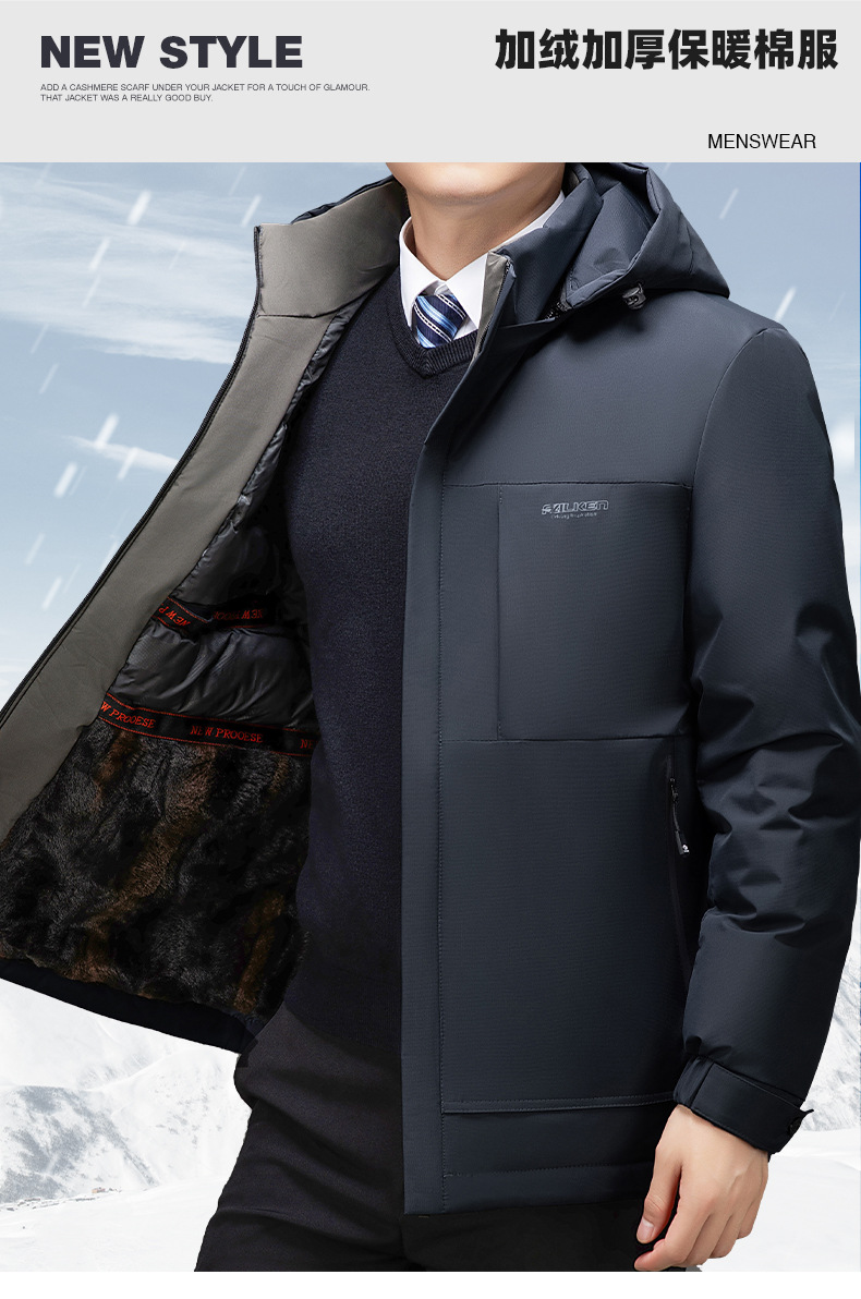 남성용 기모 코튼 패딩 코트 겨울 새로운 중년 및 노인 두꺼운 따뜻한 후드 패딩 코트 남성용 아버지면 패딩 코트스토어 가기