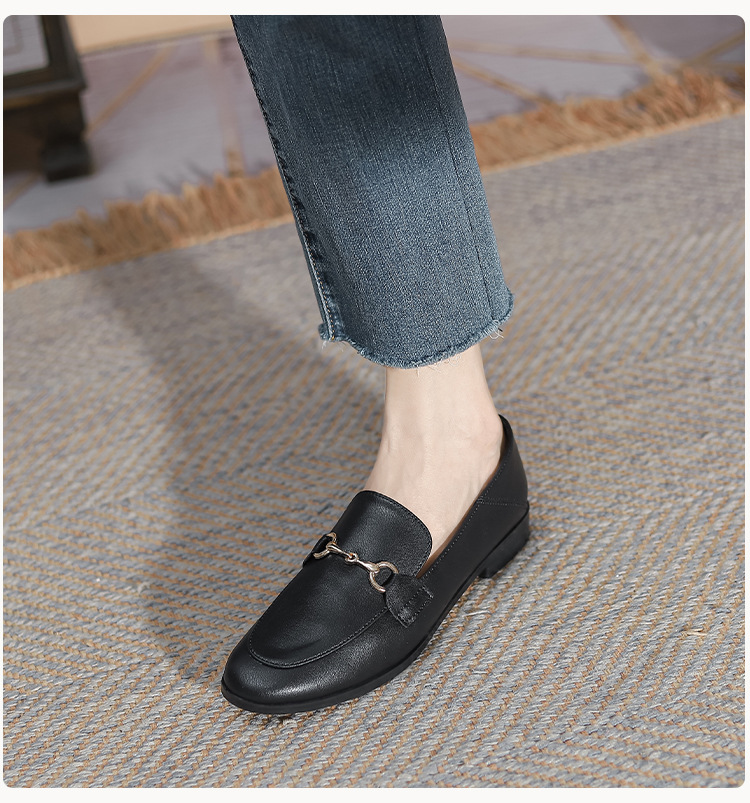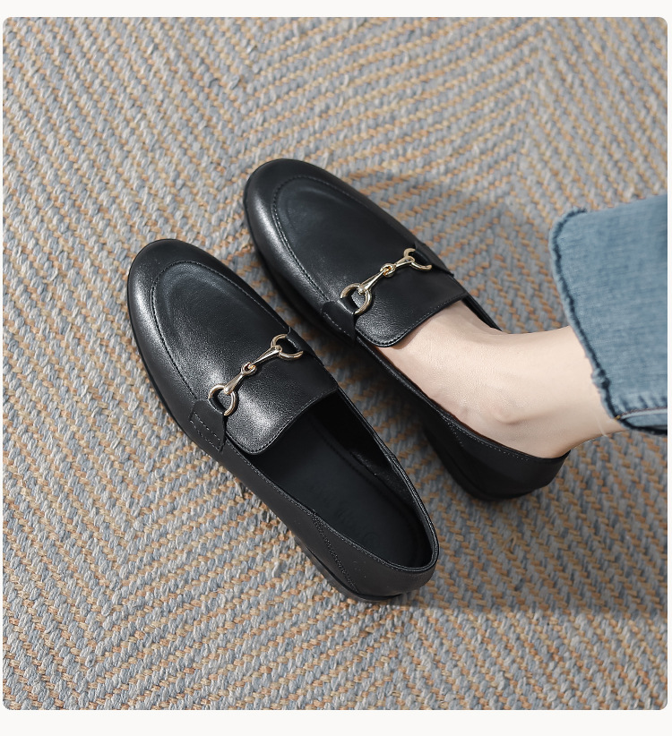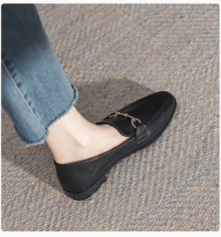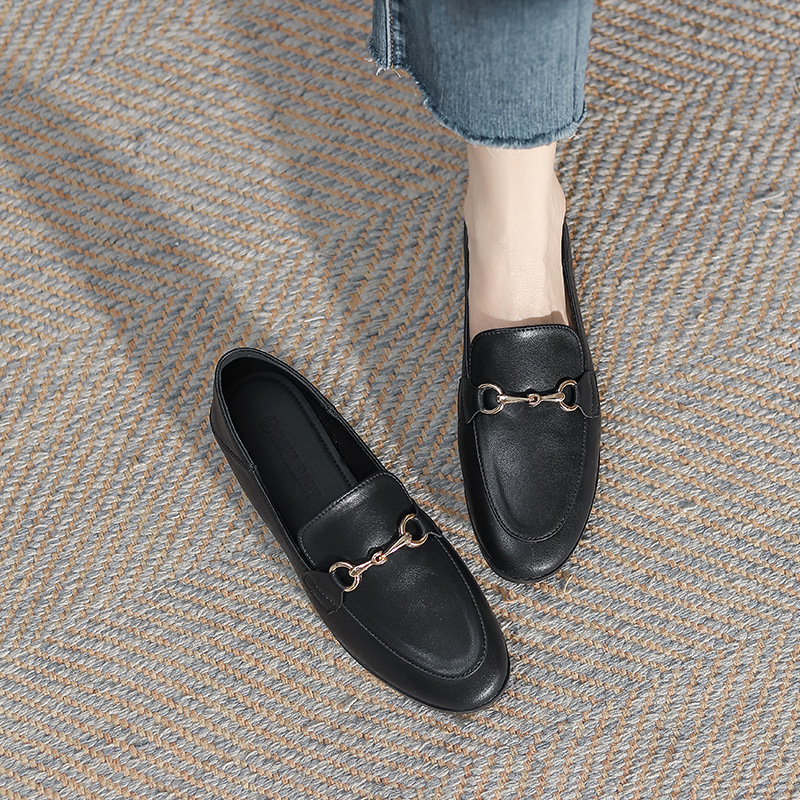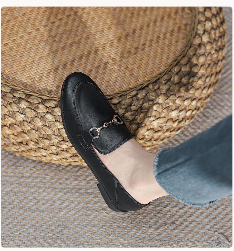 말굽형 로퍼 여성 플랫슈즈 2025 가을 신상 발이 피곤하지 않은 영국식 슬립온 가죽 신발 라운드 토 단화스토어 가기