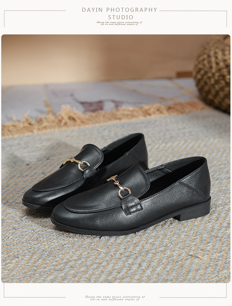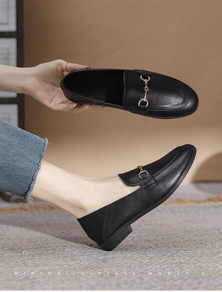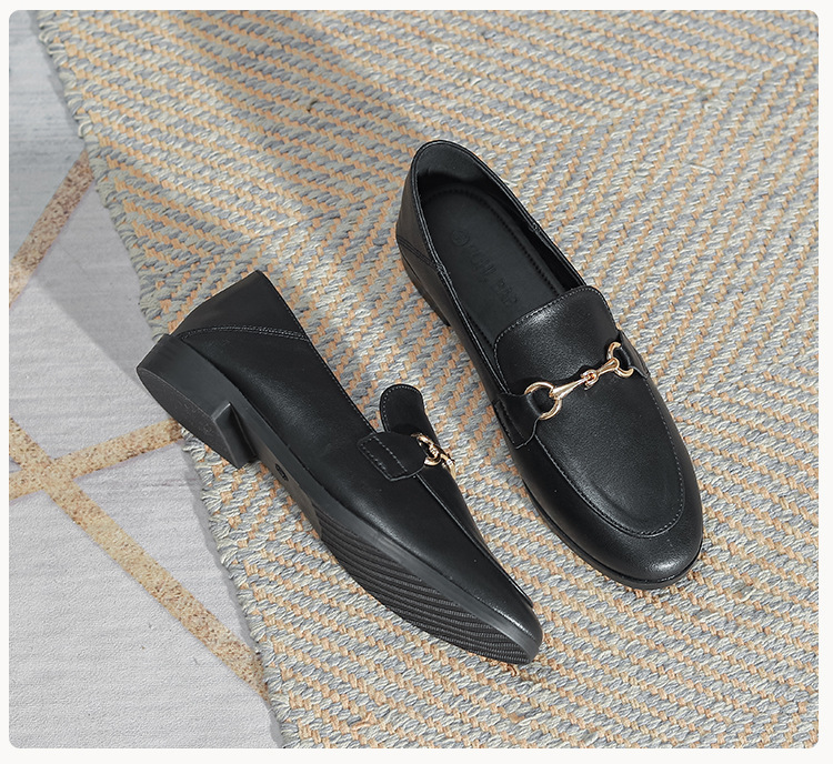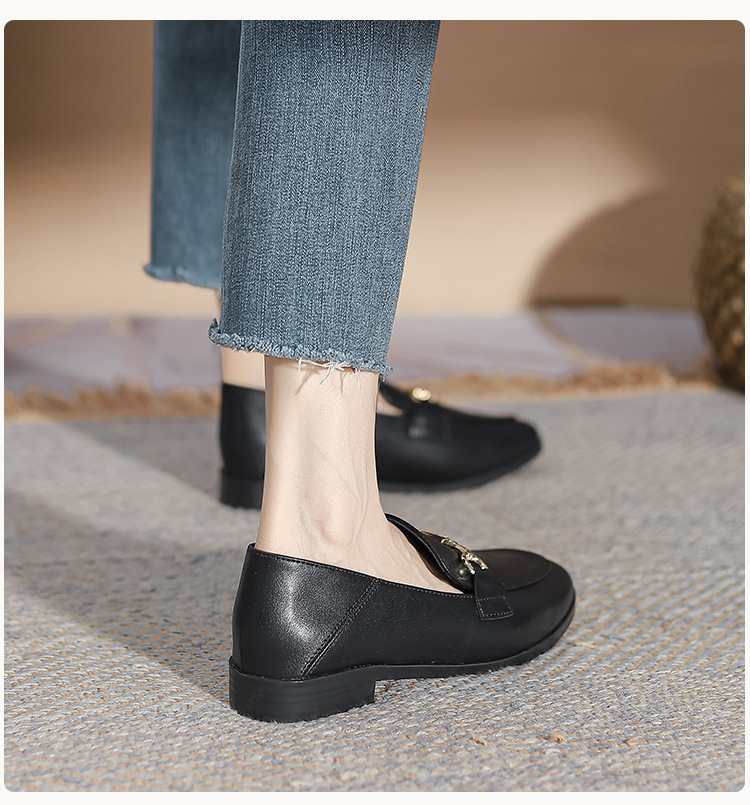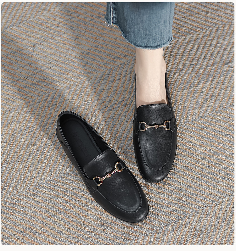말굽형 로퍼 여성 플랫슈즈 2025 가을 신상 발이 피곤하지 않은 영국식 슬립온 가죽 신발 라운드 토 단화스토어 가기