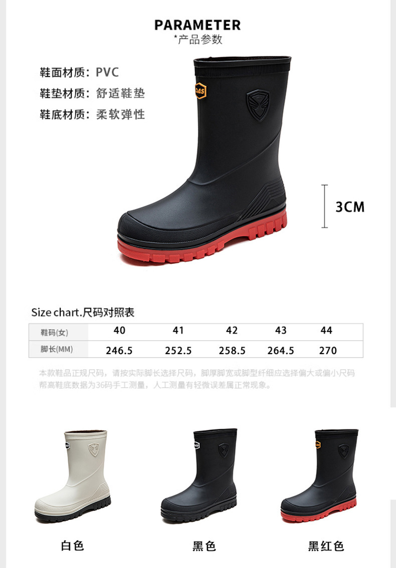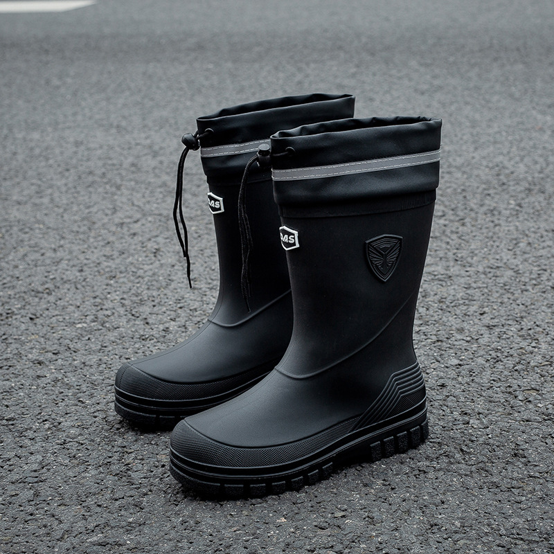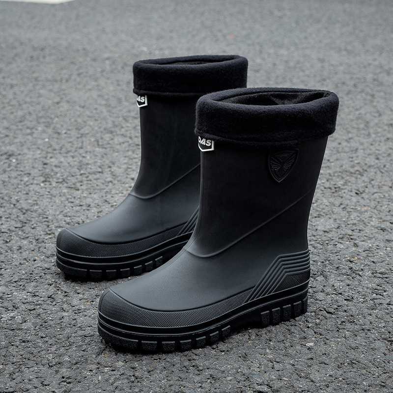 남성용 방수 신발, 중간 길이의 두꺼운 방한 고무신, 작업용 미끄럼 방지 낚시용 부엌용 레인부츠, 보온 및 미끄럼 방지