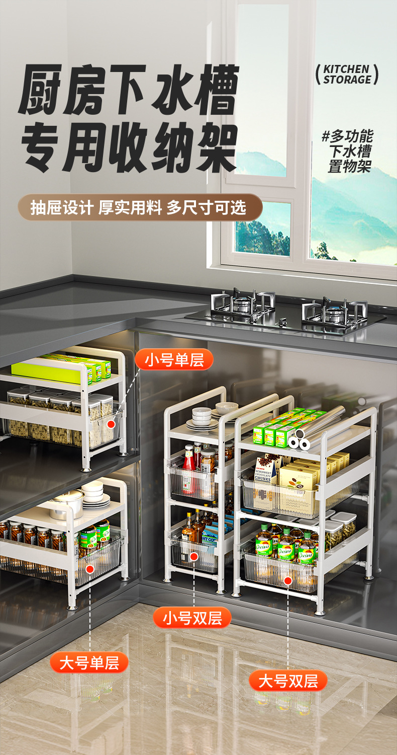 주방 싱크 풀 바구니 랙 캐비닛 다기능 조미료 보관 다층 랙 풀아웃 다층 선반스토어 가기