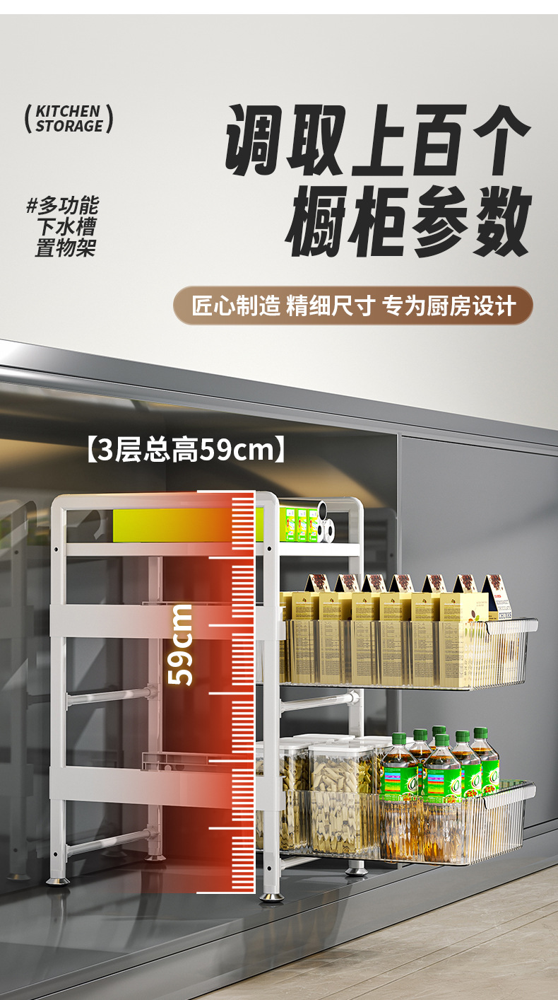 주방 싱크 풀 바구니 랙 캐비닛 다기능 조미료 보관 다층 랙 풀아웃 다층 선반